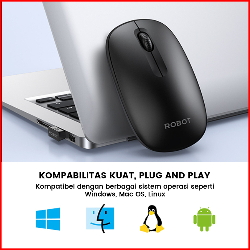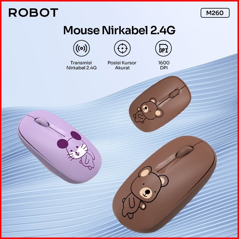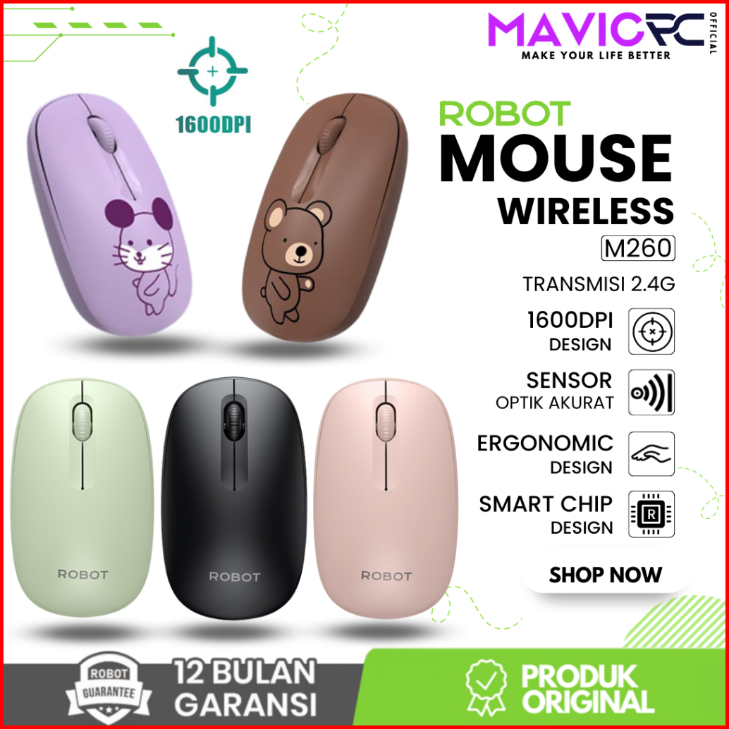 Robot M260 Mouse Wireless 2.4g Optical Usb Mouse Ergonomis Design 1600dpi For Pc Laptop - Garansi Resmi 1 Tahun