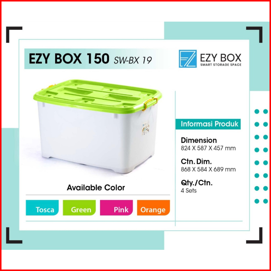 Container Box Ezy Cb 150 Liter Kotak Tempat Penyimpanan Wadah Plastik Dengan Rodah Takasimur Kuat Kokoa Store
