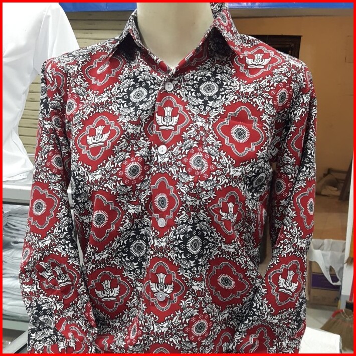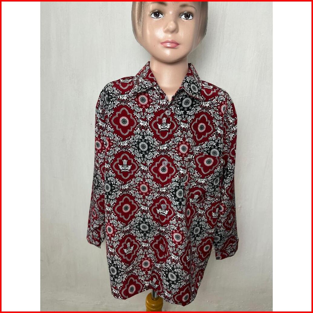 Baju Batik Merah Sekolah Sd Lengan Panjang Seragam Negri Unisex Kelas 1-6
