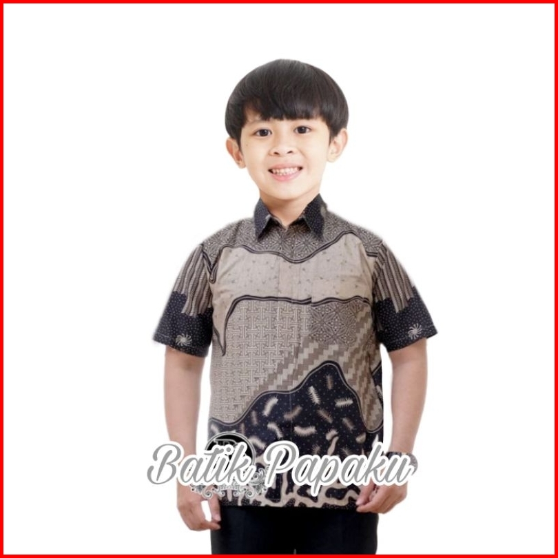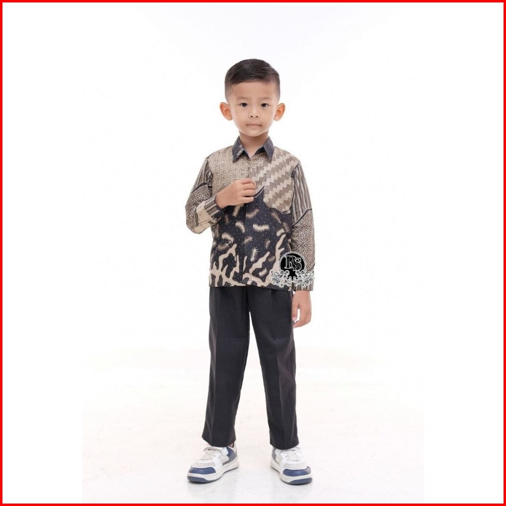 Kemeja Batik Anak Laki-laki Lengan Panjang Batik Ayah Dan Anak Cowok Warna Coklat Susu Cream Coksu