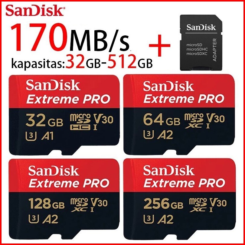 Micro Sd 32 64 128 256gb A2 Kelas 10 Kartu Uhs-i U3 170mb S Memory Card Hp Ori Kartu Memori Tf Mikro
