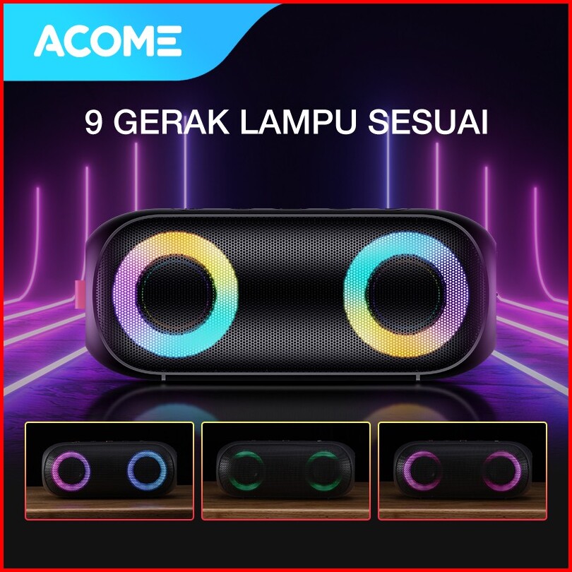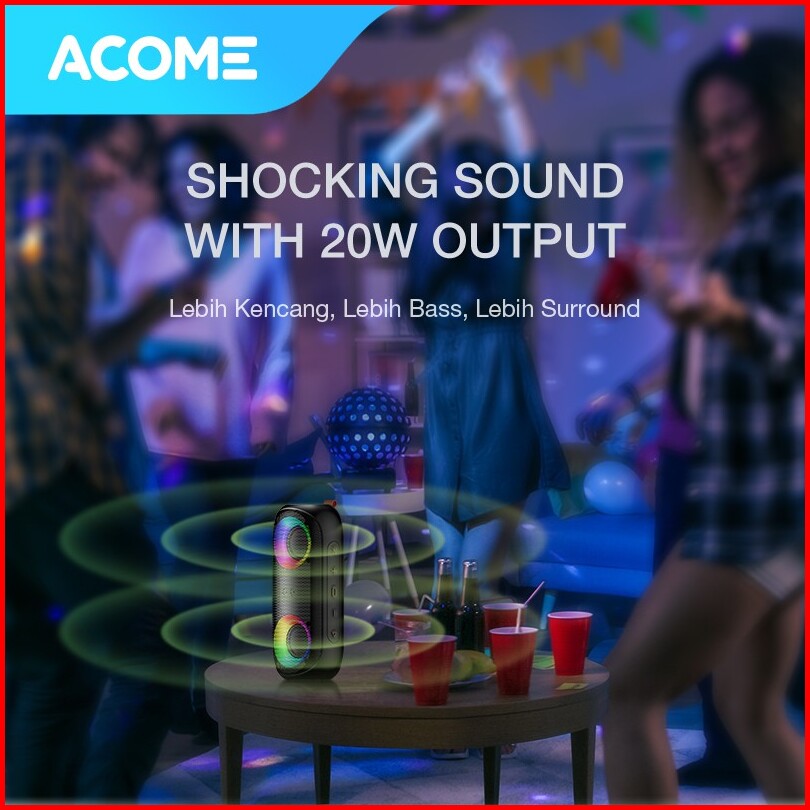 Acome Super Bass Speaker Bluetooth 5.0 20w Ipx7 Waterproof Rgb Light Rhyme Rave Party A20