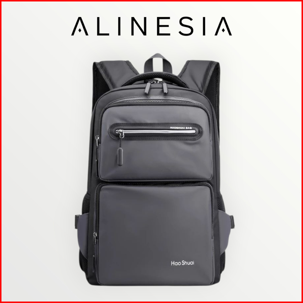 Alinesia - Tas Ransel Pria Wanita Waterproof Tas Laptop Punggung Anti Air Backpack Daily Tas Kuliah Black Abu Hijau