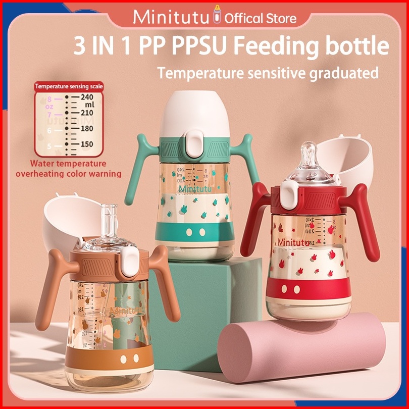 Minitutu 3 In 1 Botol Susu Rasa Suhu Pp Ppsu Bahan Dengan Sedotan Dan Tutup Botol Anti Jatuh Anti Kembung Berkaliber Leb