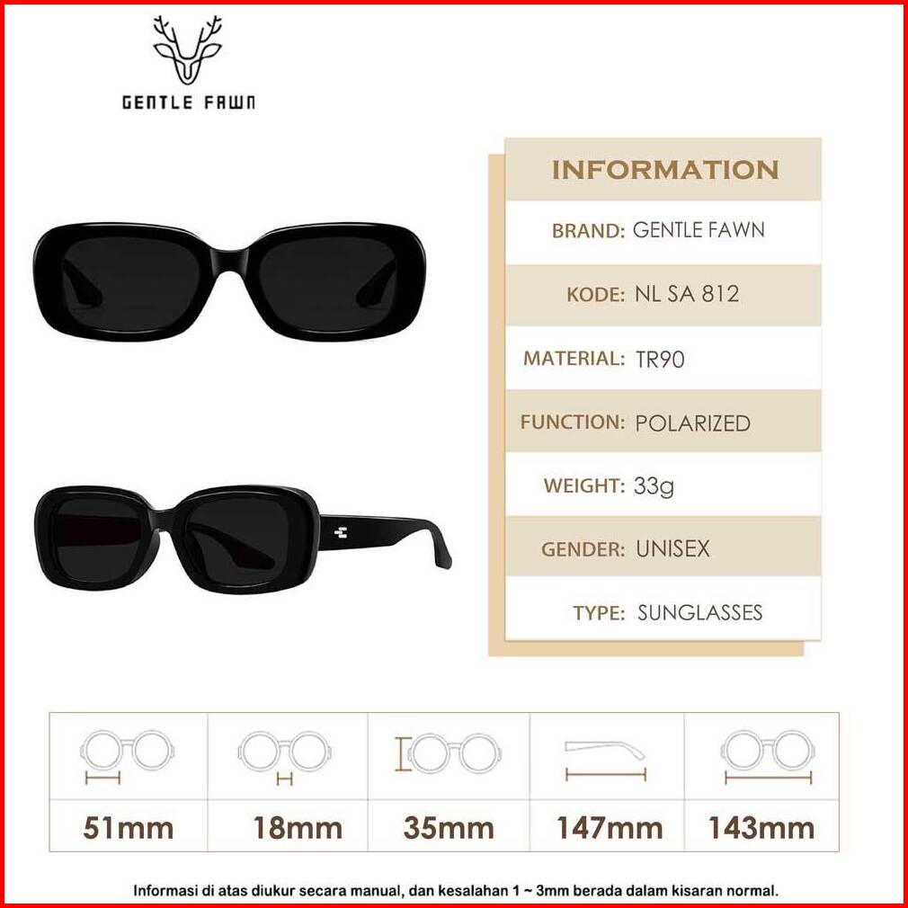 Gentle Fawn Kacamata Hitam Sunglasses Polarized Anti Silau Fashion Wanita Terbaru Style Kotak Bahan Tr90 Kekinian 812
