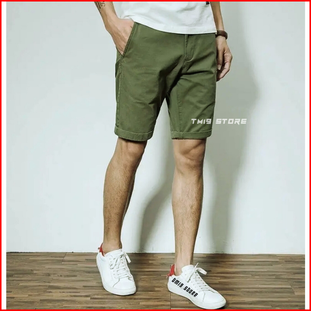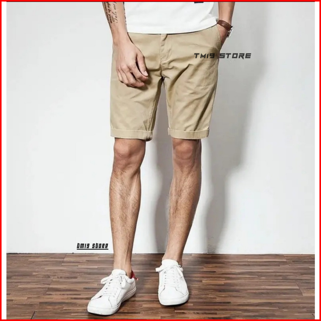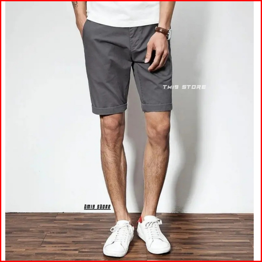 Celana Pendek Pria Chino Short Pants Chinos Original Premium Size 28-38 Warna Army Cream Hitam Mocca Grey