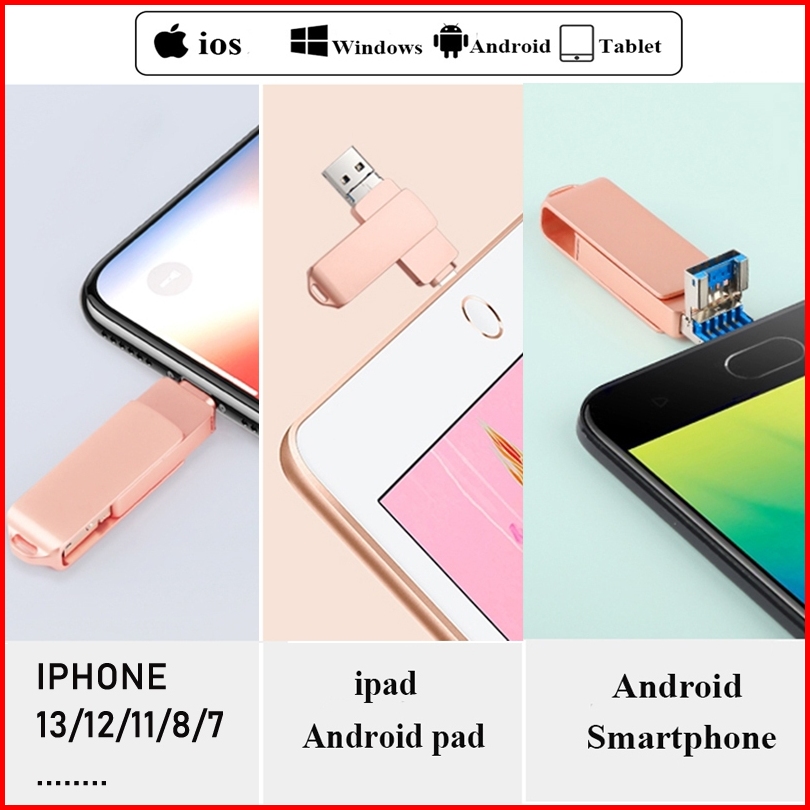 Y31 3 In 1 Ios Otg Usb Flash Drive 32gb 64gb 128gb 256gb 1tb Rotation Pen Drive For Iphone Android Pc Iso Micro Usb