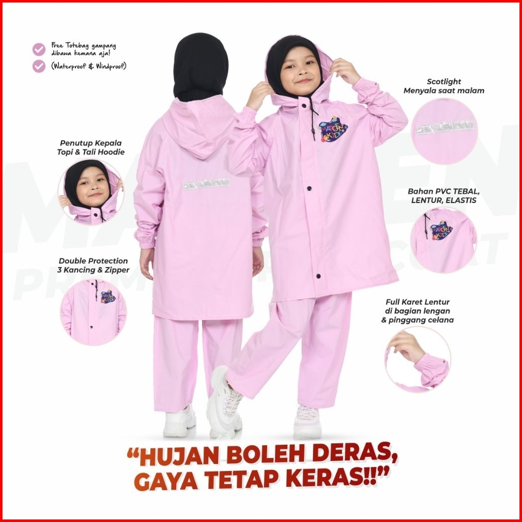 Jas Hujan Anak Tebal Lentur Anti Rembes By Maroen Kids Banyak Variasi Warna