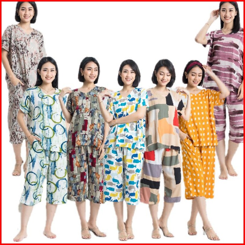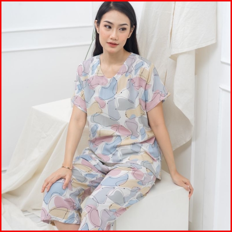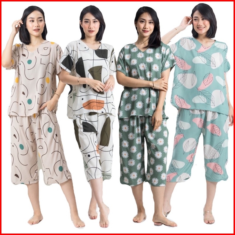 Milki Piyama Baju Tidur Setelan Oneset Rayon Model Celana 7 8 Mv