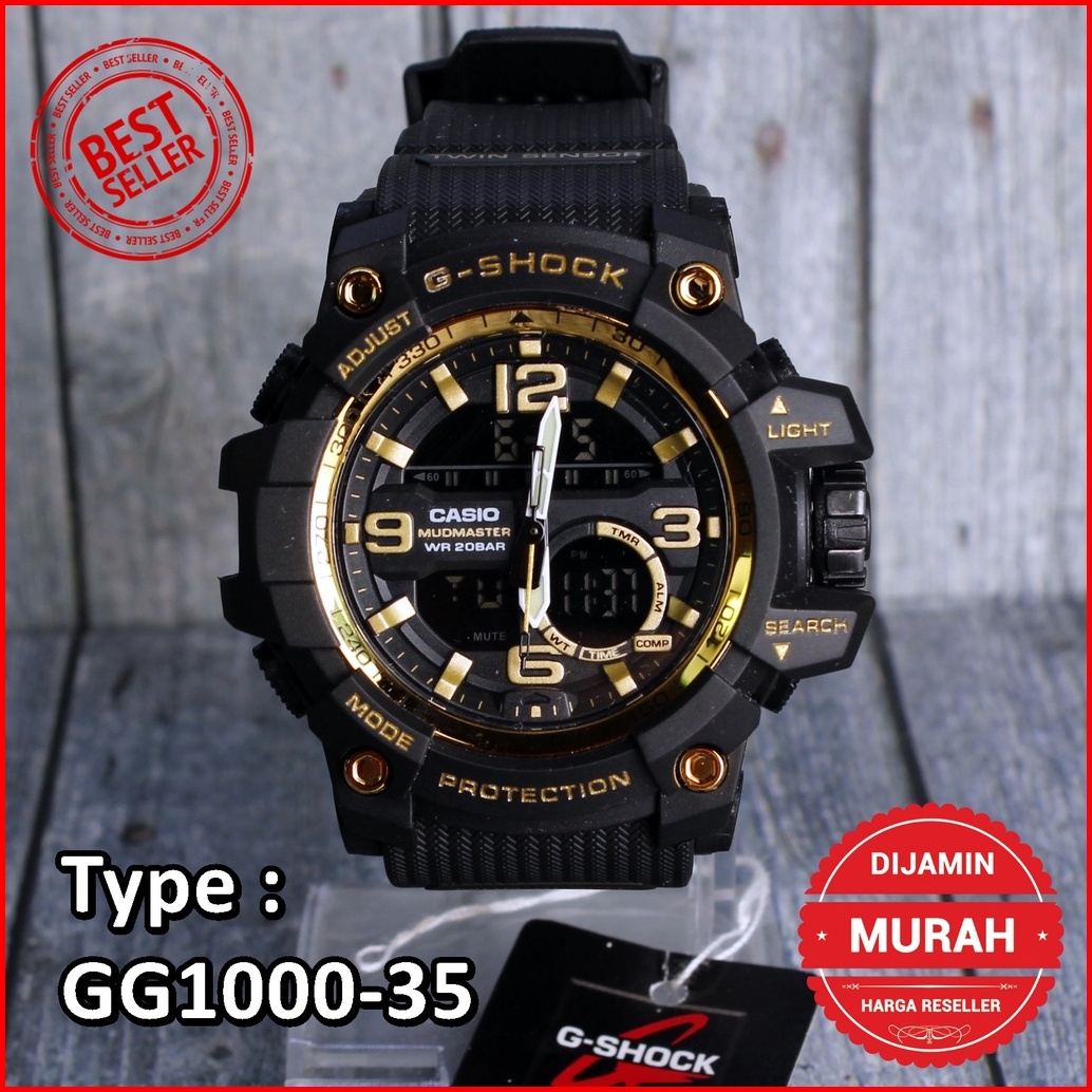 G Shock Gg-1000 Army Jam Tangan Digital Dual Time Pria Anak Anak Anti Air Sporty Hijau Cream Army