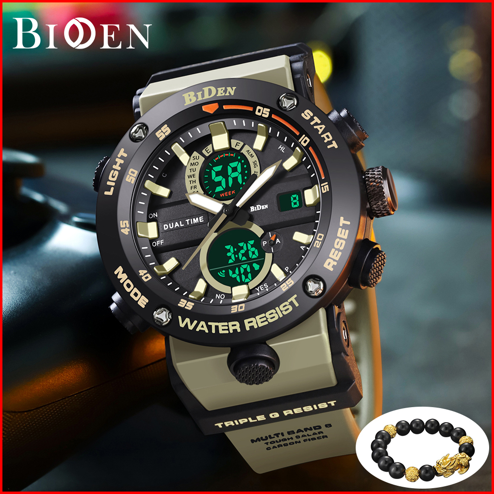 Biden Jam Tangan Pria Digital Analog Anti Air Original Olahraga Multifungsi Alarm Bercahaya Tali Silikon Jam Tangan Cowo