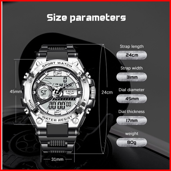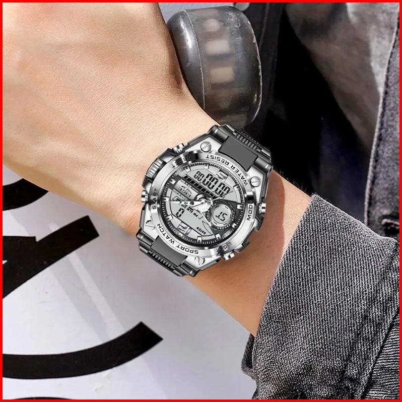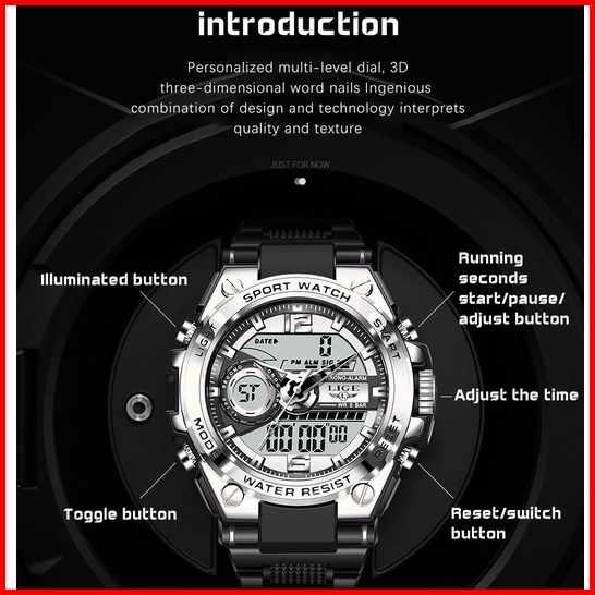 Lige Jam Tangan Digital Pria Multifungsi Arloji Bercahaya Waktu Ganda Kalender Jam Tangan Elektronik Kotak