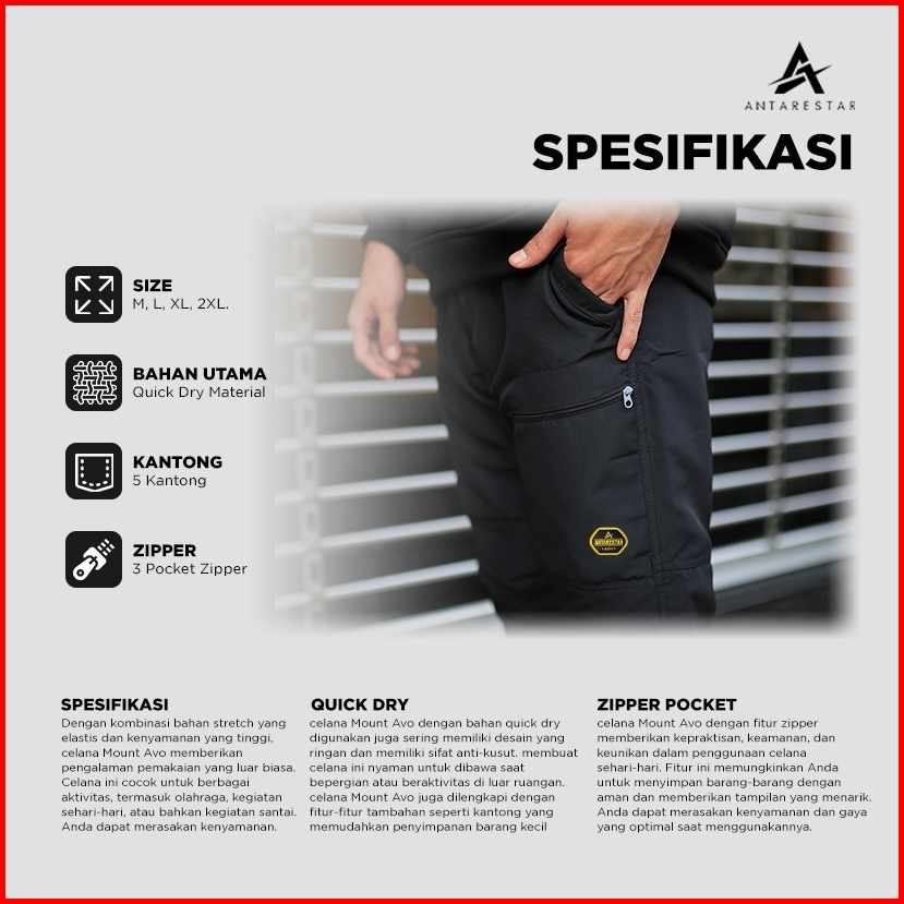 Celana Panjang Gunung Mount Avo Hitam Celana Outdoor Stretch Series Antarestar
