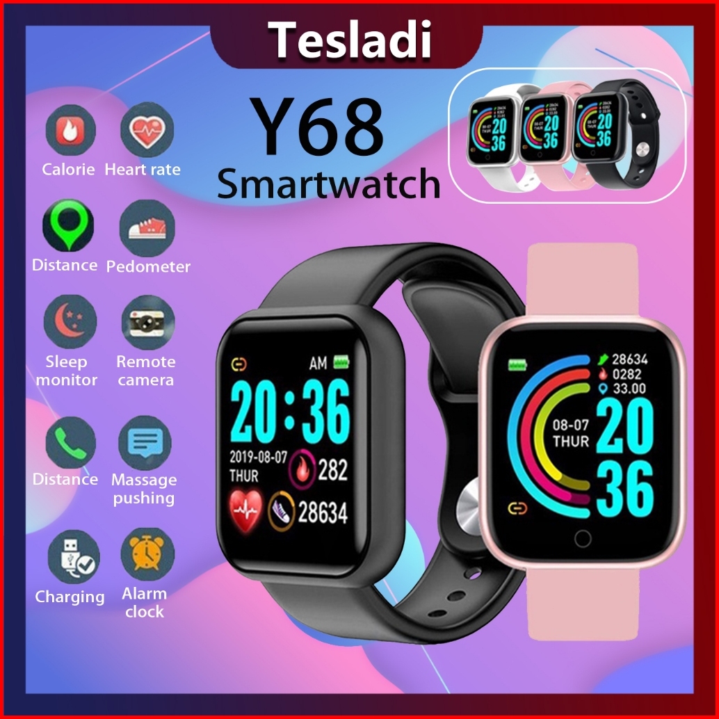 Tesladi Smartwatch Y68 Sport Tahan Air Smart Bluetooth Watch Heart Rate Gelang Pedometer Pelacak Kebugaran