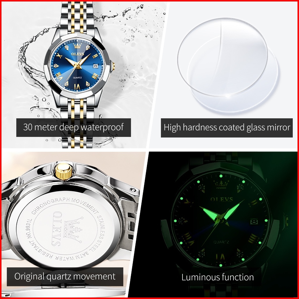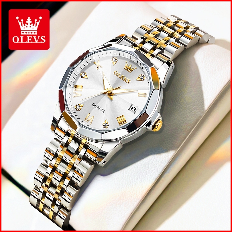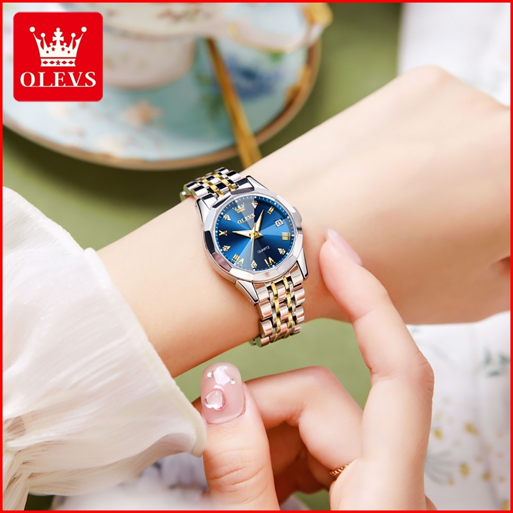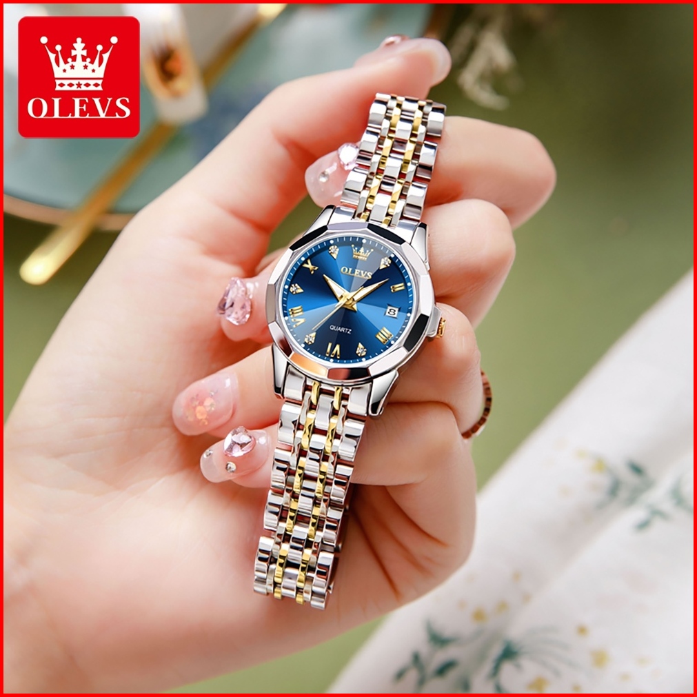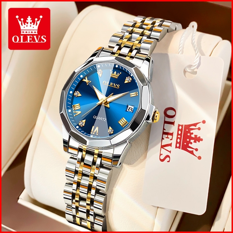 Olevs Jam Tangan Wanita Anti Air Original 100 Resmi Kekinian Elegan Mewah Cewek Kalender Analog Luminous Stainless Steel