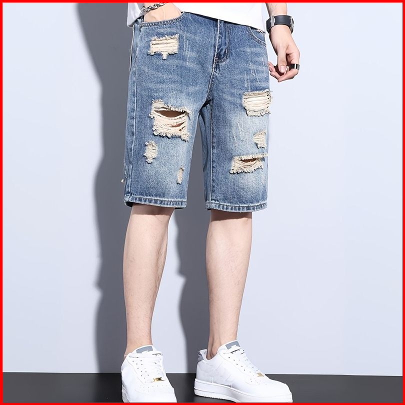 Celana Pendek Sobek Jeans Pria Premium Putih Size Jumbo