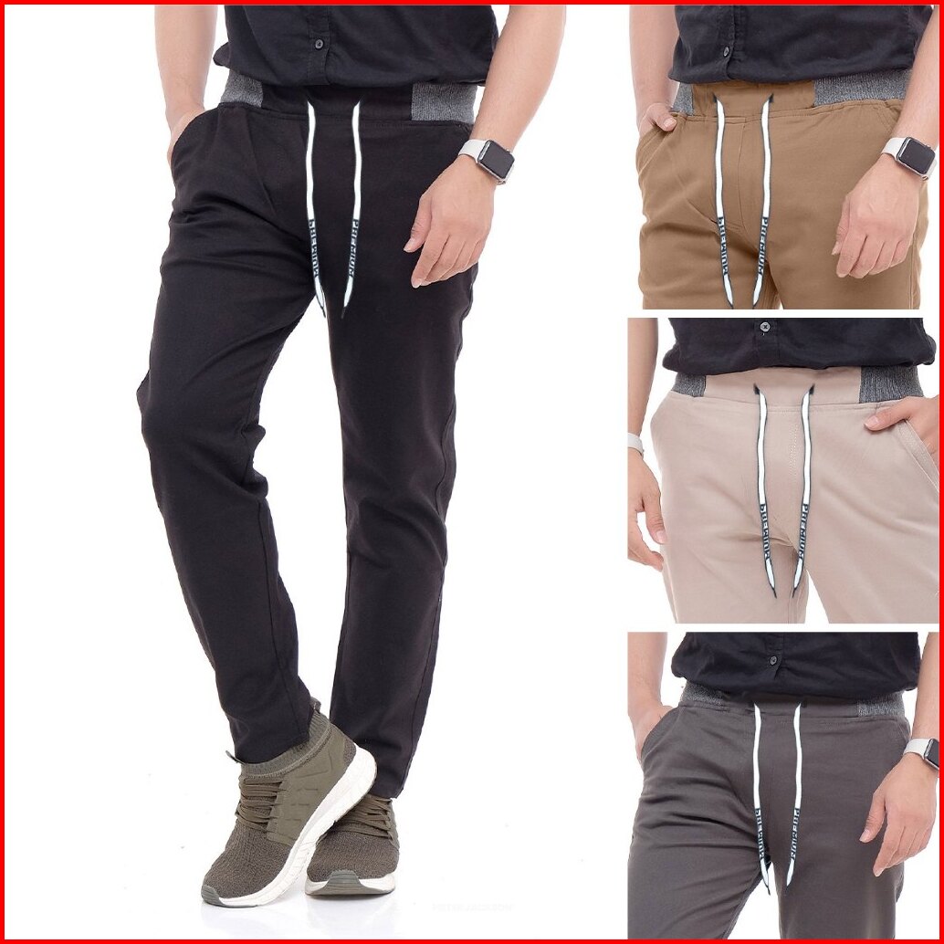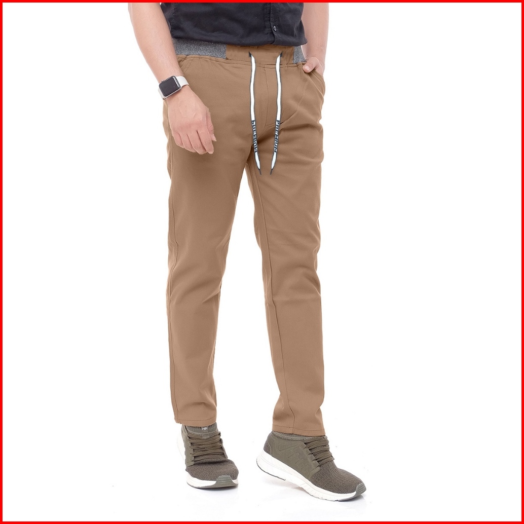 Celana Chino Rip Panjang Dewasa Pinggang Karet Bahan Stretch Melar Rib Chino Pants