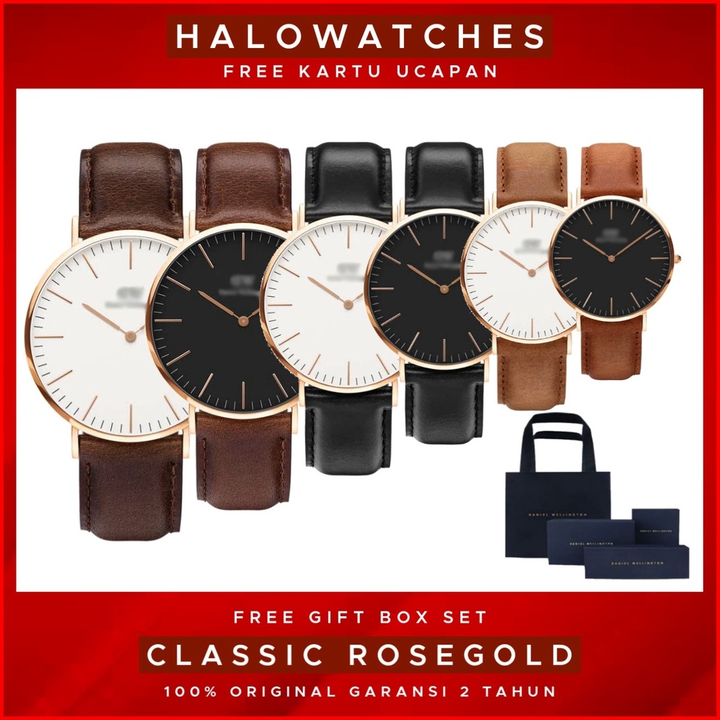 Original 100 - Garansi 2 Thn Jam Tangan Daniel Wellington Original Pria Wanita Classic Rosegold Fullset Packaging Dan Fr