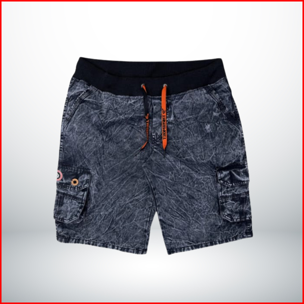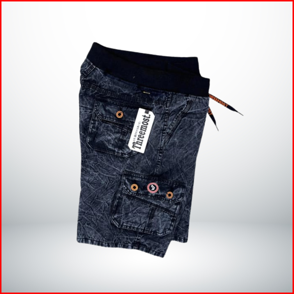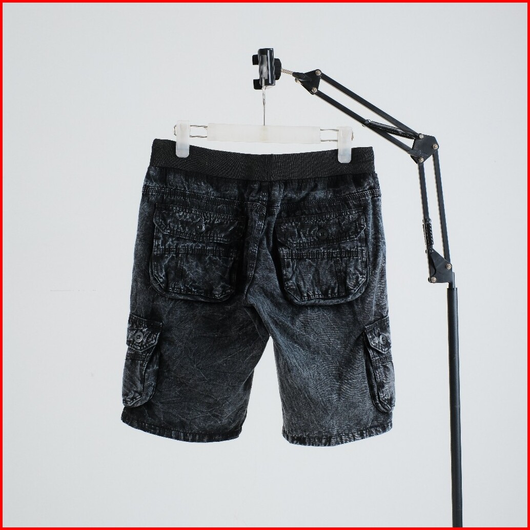 Celana Pendek Cargo Pria Rip Pinggang Karet Snow Wash Distro