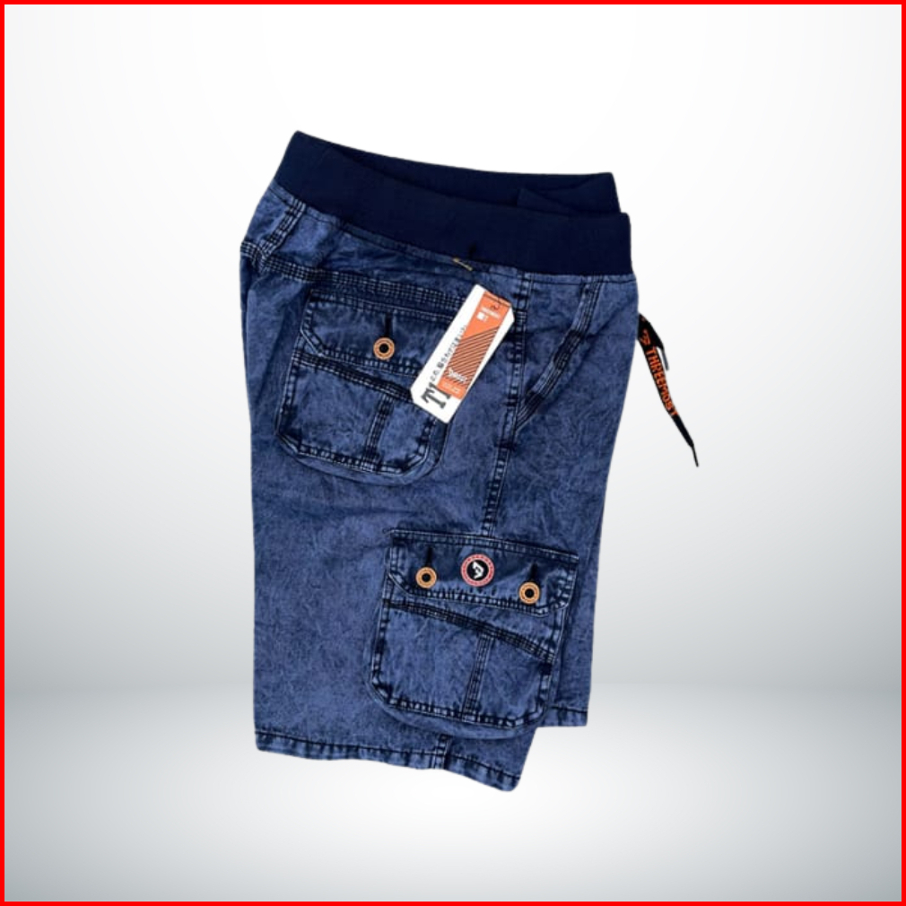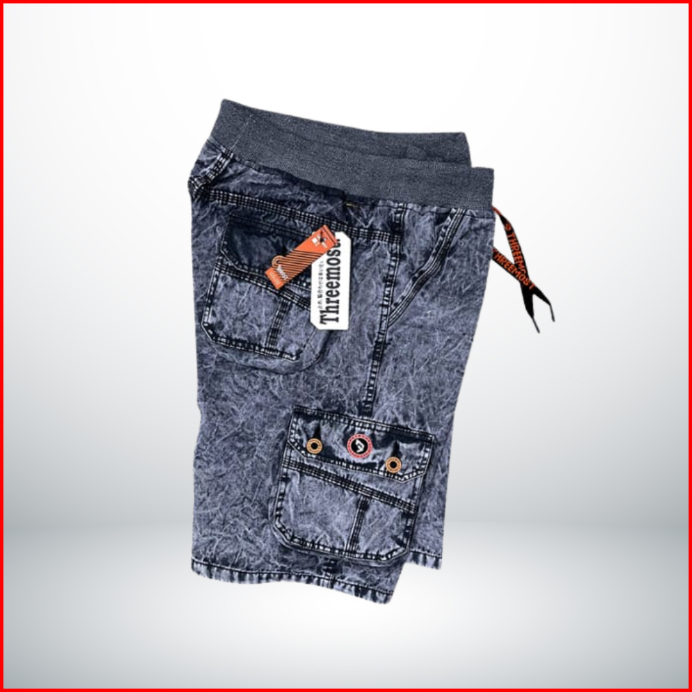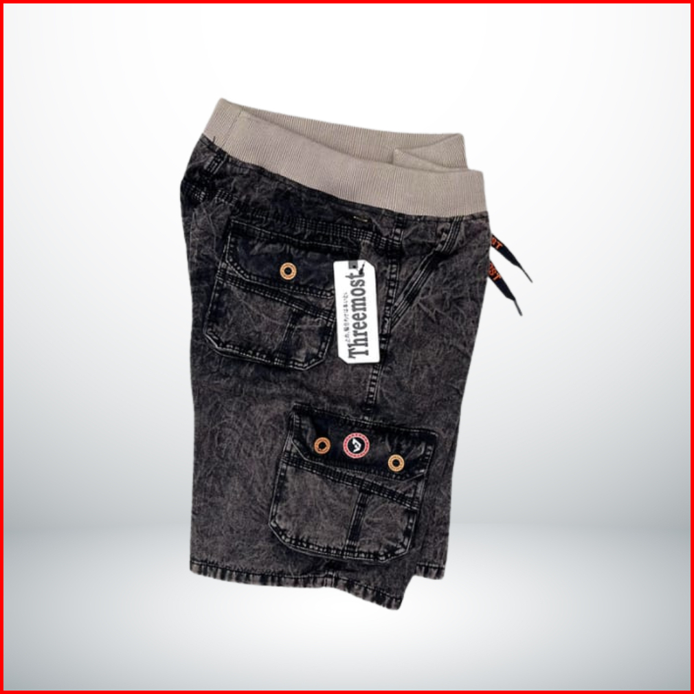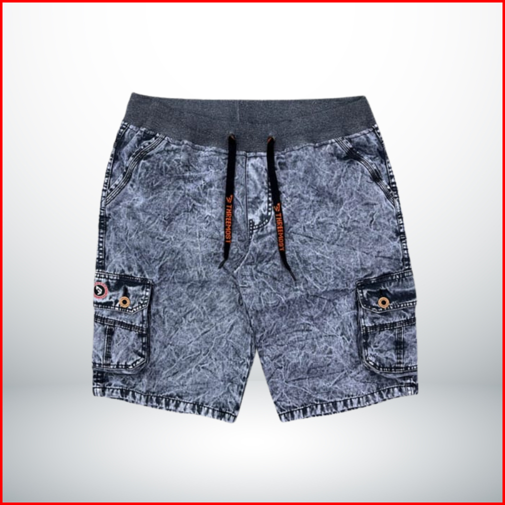Celana Pendek Cargo Pria Rip Pinggang Karet Snow Wash Distro