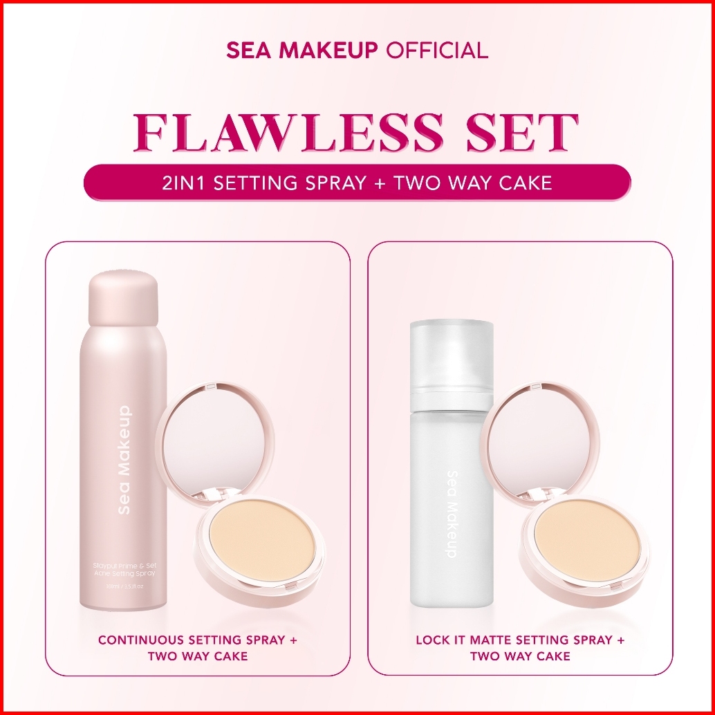 Bundle 2in1 Sea Makeup Two Way Cake Setting Spray Bedak Two Way Cake Powder Foundation Untuk Wajah Berjerawat