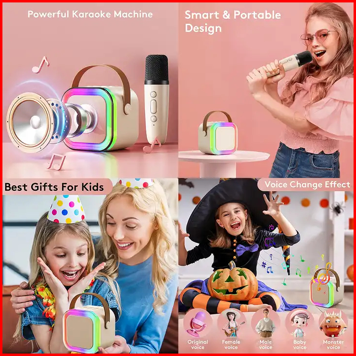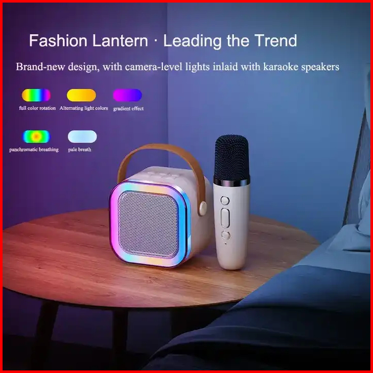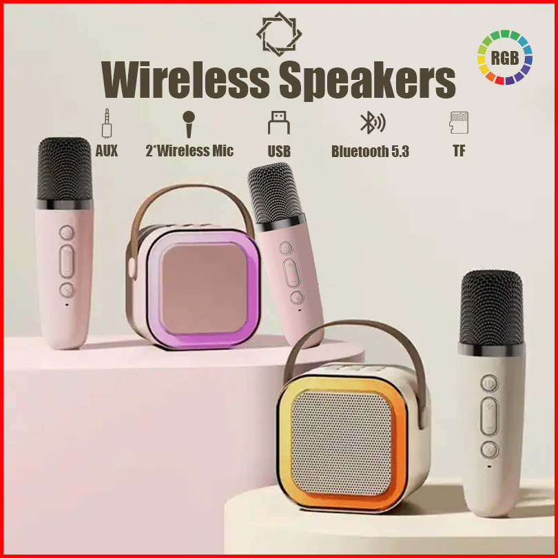 Karaoke Speaker Wireless Bluetooth 2 Mic 1 Set Mini Portabel Lucu Colorful Rgb Karaoke Super Bass Mini Set Karauke Speak