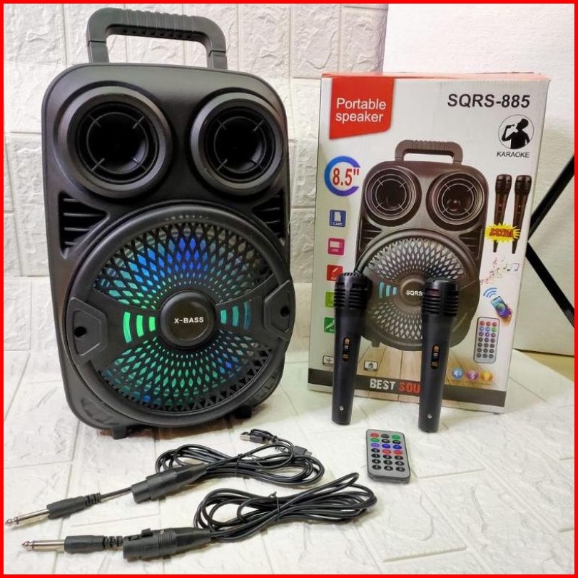 Speaker Bluetooth Karaoke 8 5 Inch Sqrs-885 Bonus 2 Mic Kabel Karaoke X-bass Speaker Salon Aktif Speaker Wireless