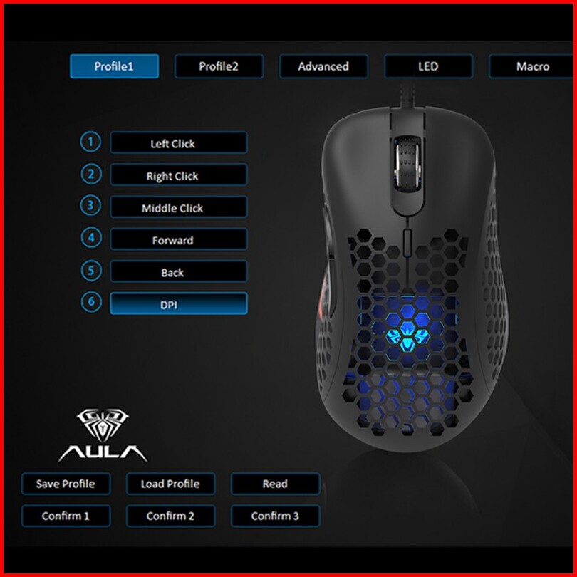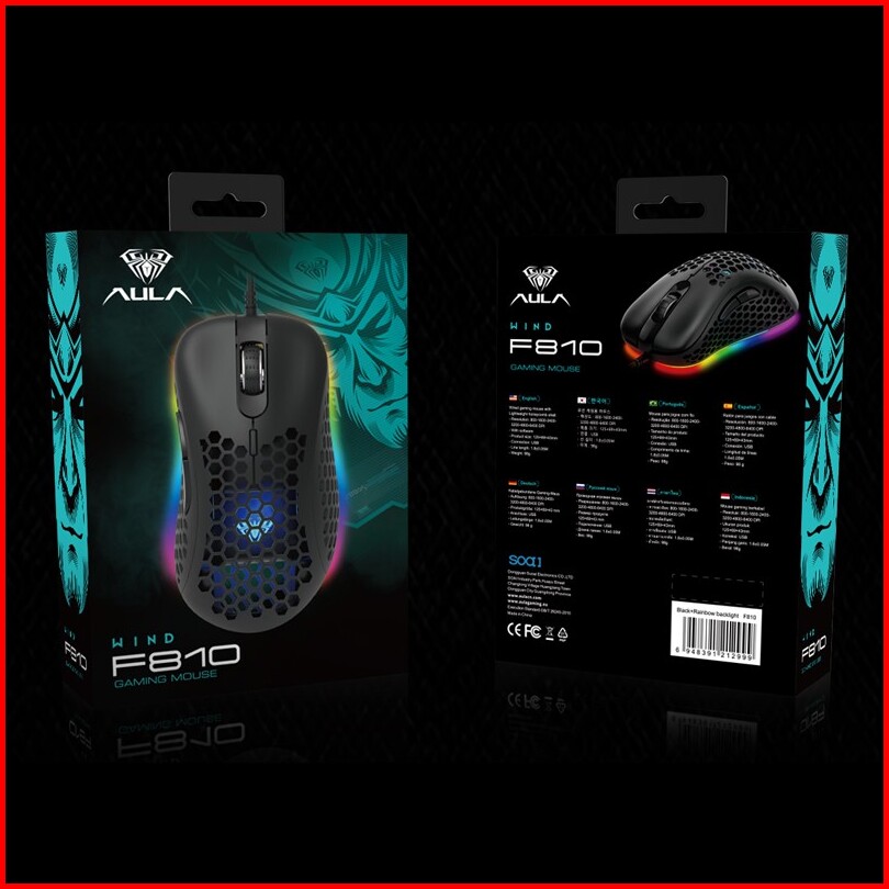 Mouse Gaming Honey Comb Aula F-810 Rgb Lighting - 6400dpi - Macro System - 7 Buttons - Fine Texture