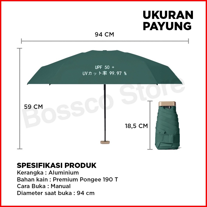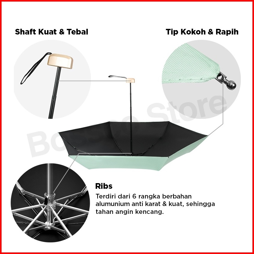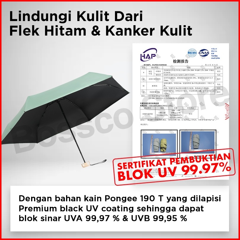 Bossco Payung Lipat Mini Anti Uv 99 97 Bersertifikat Premium Payung Lipat Kecil Payung Lucu Payung Korea Payung Viral Pa