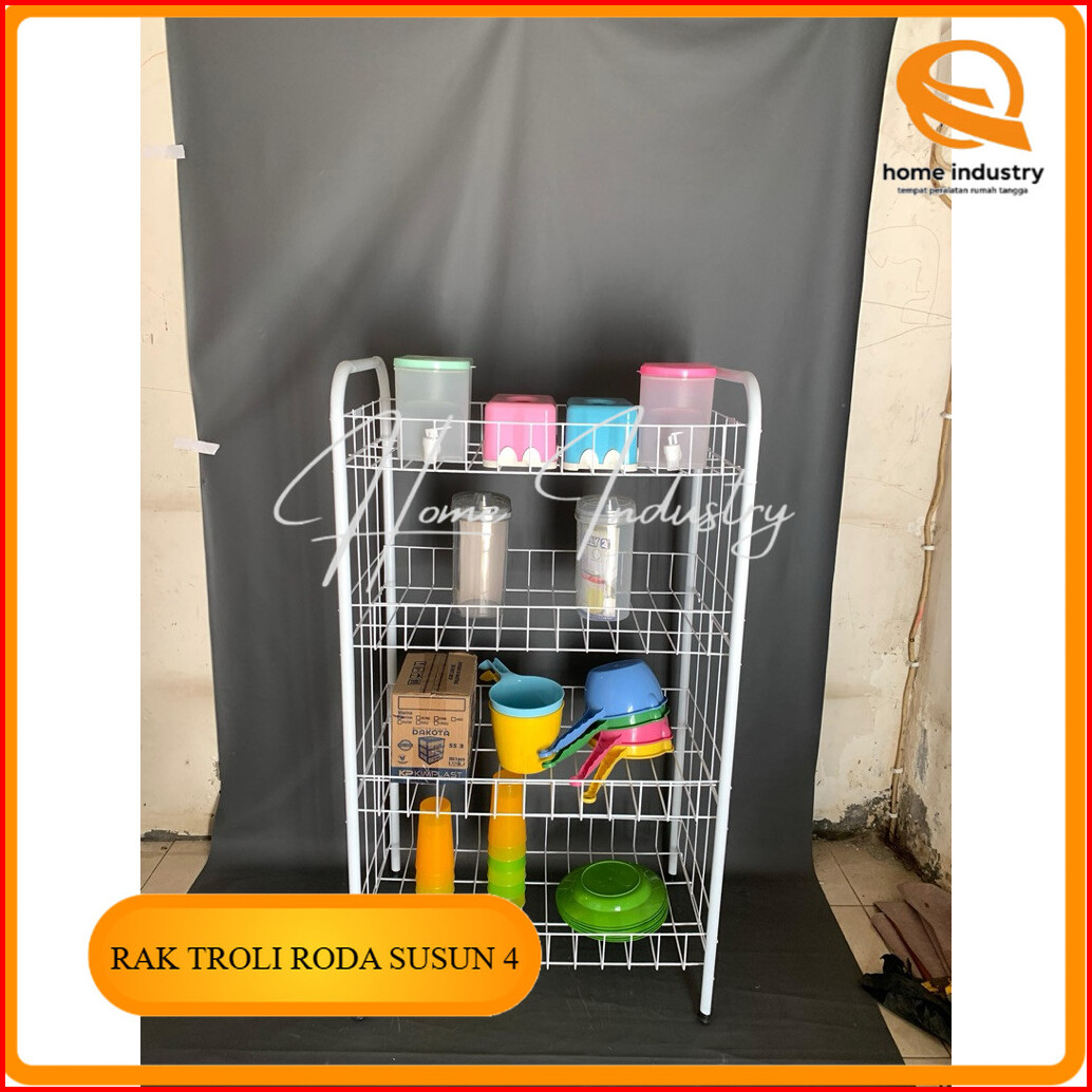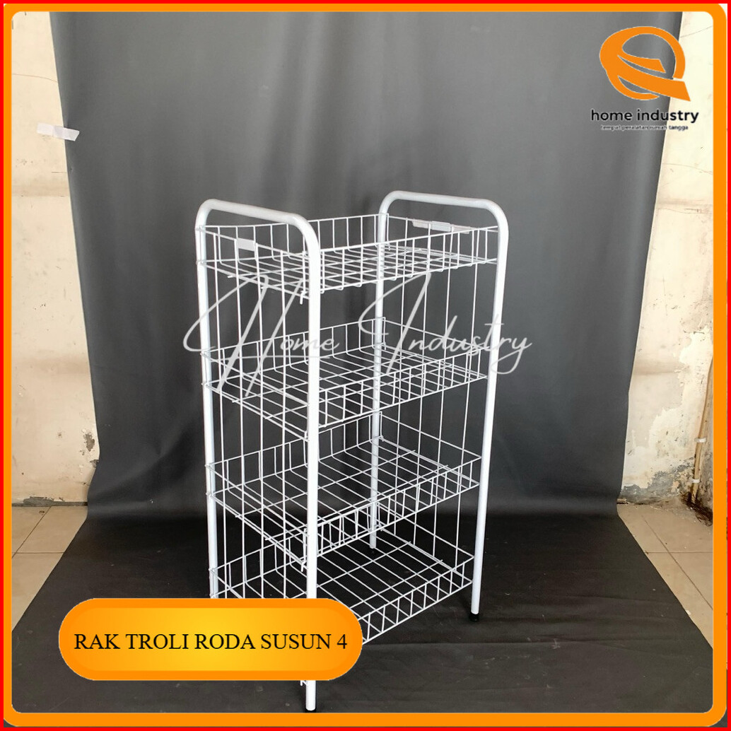Rak Troli Roda Susun 4 Rsg 04 Mini Putih Rak Chiki Rak Dapur Rak Warung Toko Rak Snack Rak Display