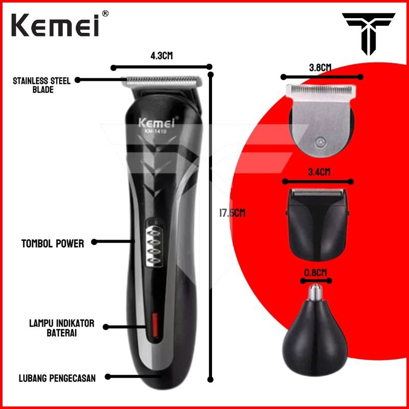 Mesin Cukur Rambut Kemei Km-1419 Professional Hair Clipper Rechargeable Berkualitas