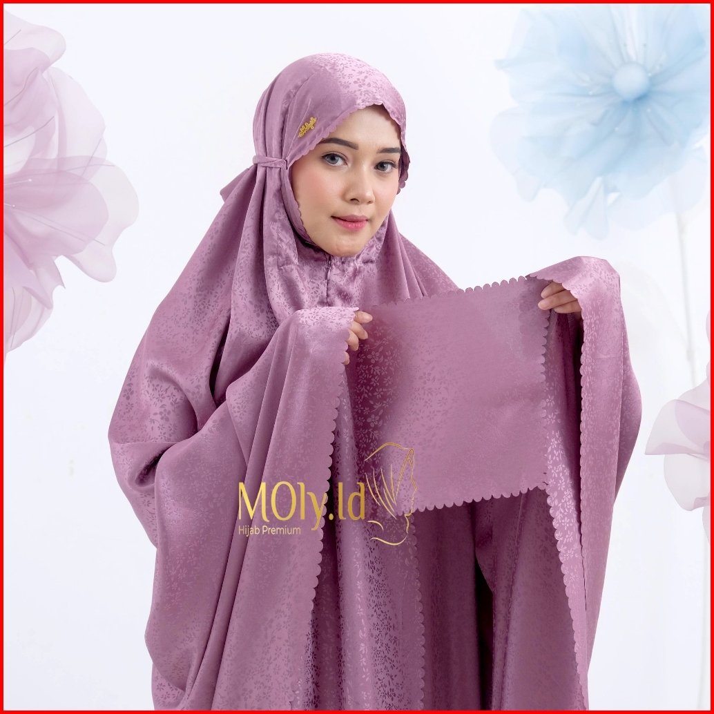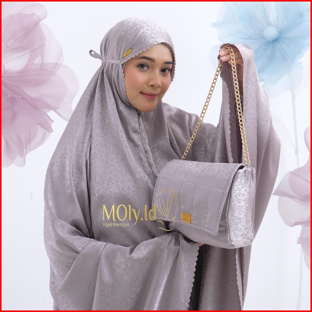 Moly.id - New Arunika Series Mukena Silk Jaguar Motif Bunga Melati Free Tas Mewah Dan Sajadah
