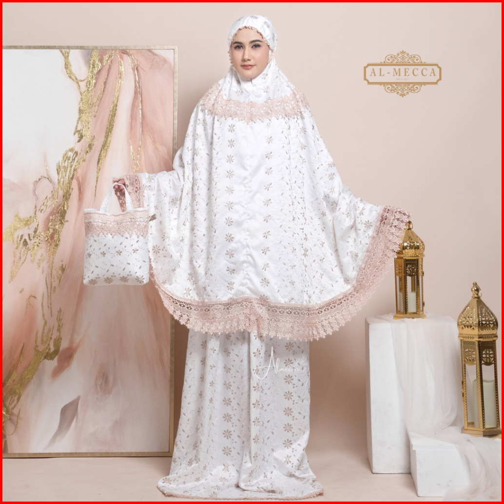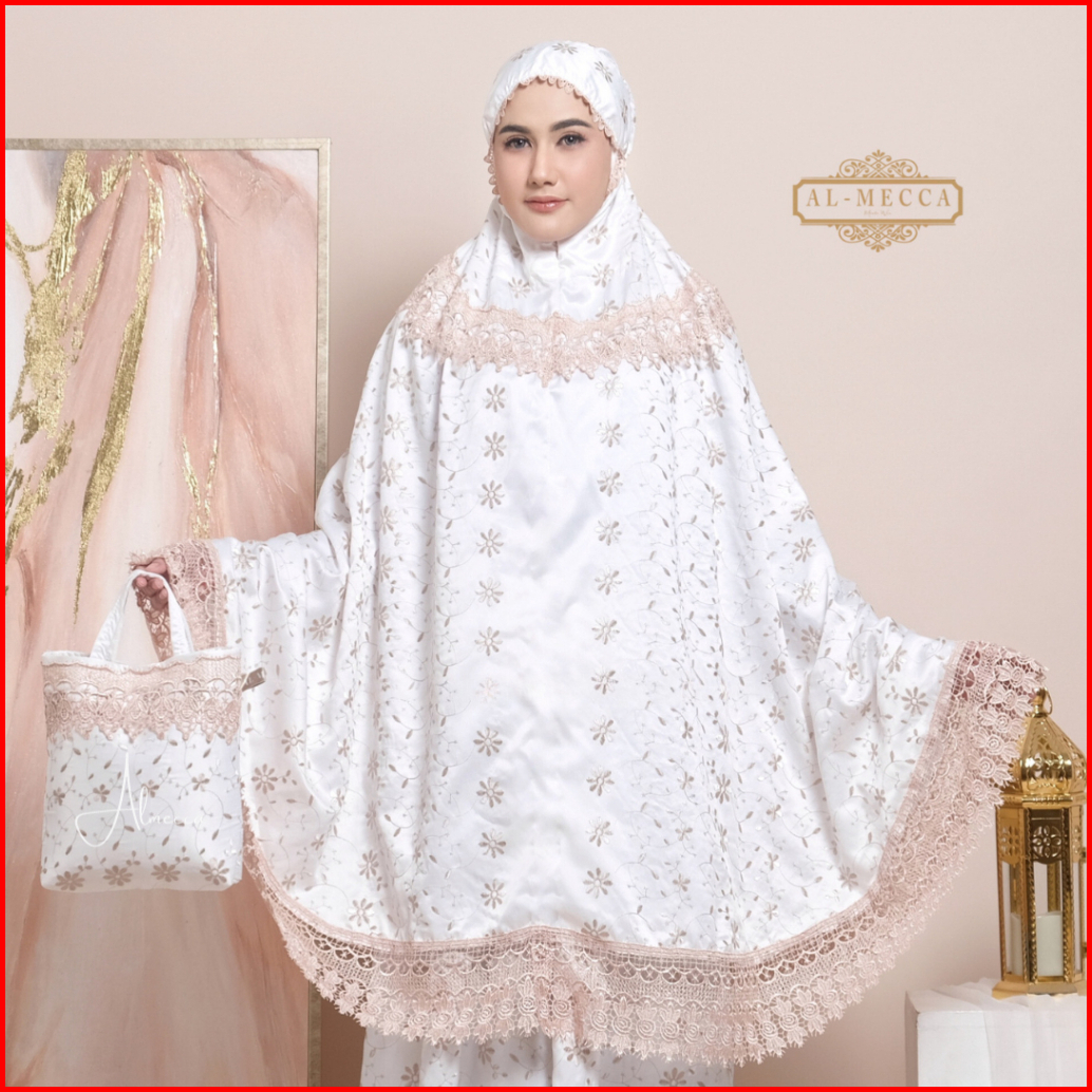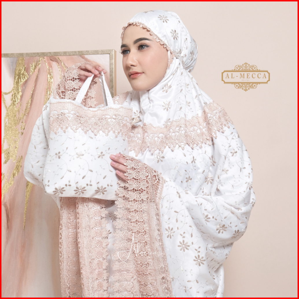 Almecca - Mukena Dewasa Premium Sutra Millo Full Bordir Jumbo Renda Mewah