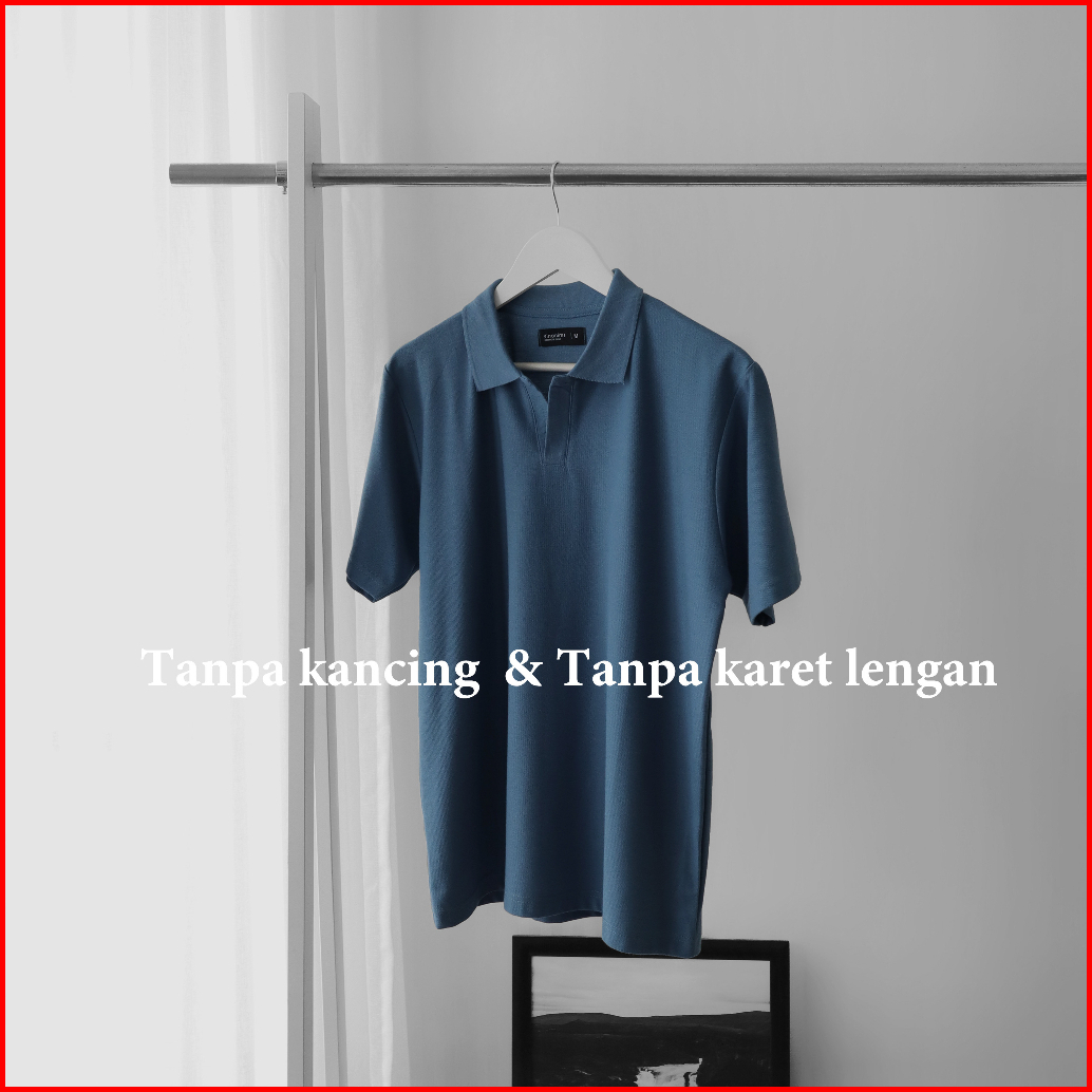Sinonims Buttonless Polo Shirt Kaos Polo Pria Tanpa Kancing Steel Blue