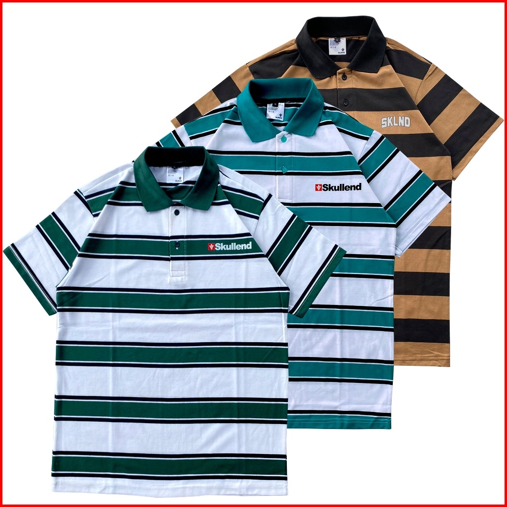 Skullend Kaos Kerah Salur Polo Shirt Pria Terbaru