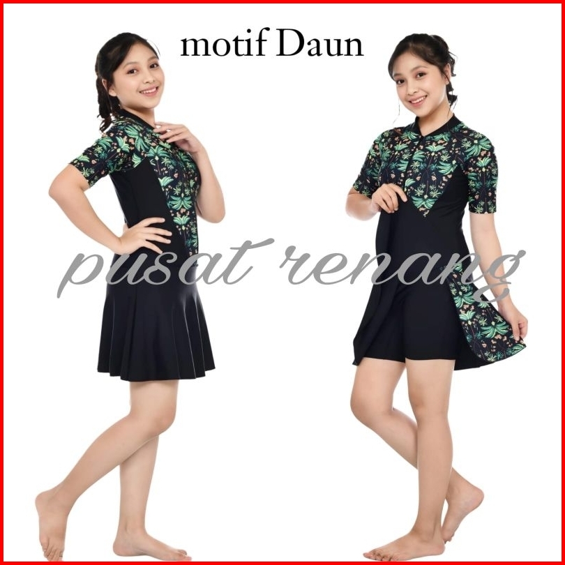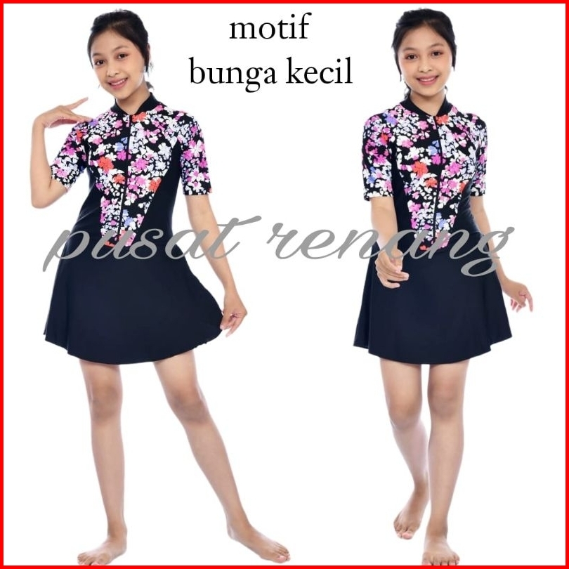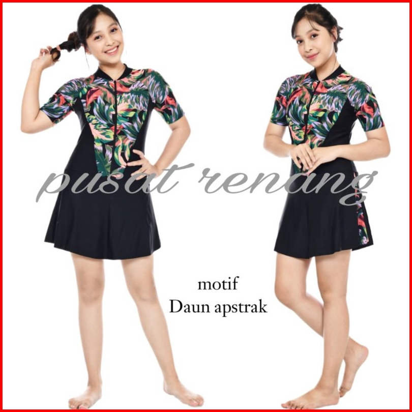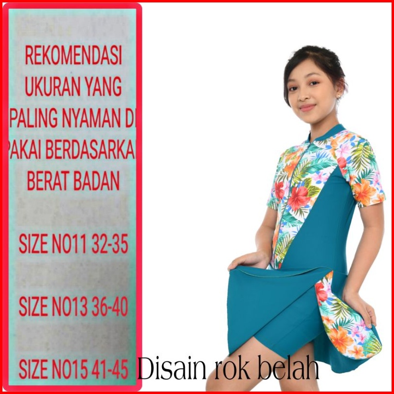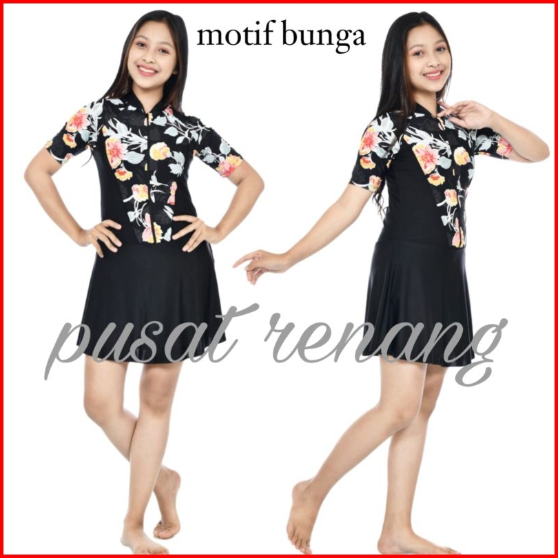 Baju Renang Abg-remaja Usia 10-15 Tahun Baju Renang Dv-rok Abg-remaja Tangan Pendek Motif