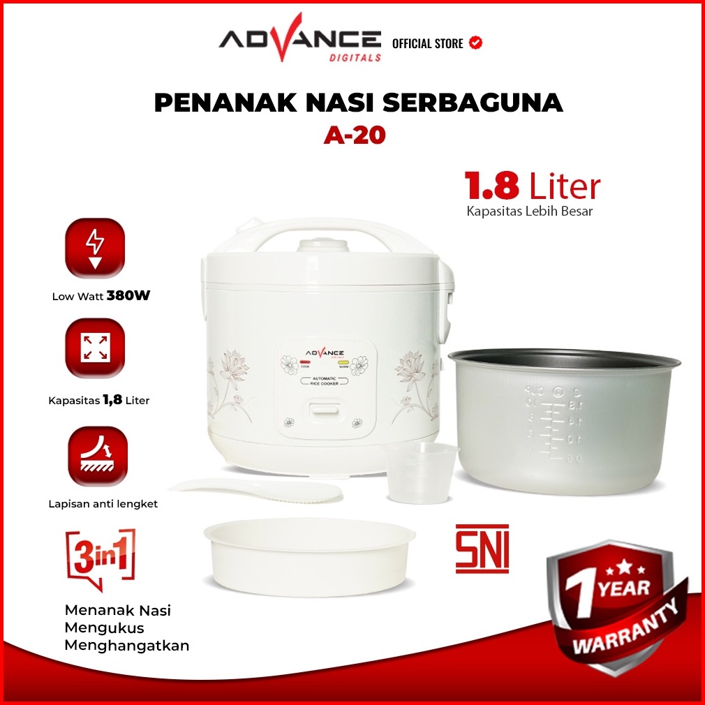 Rice Cooker Advance A12 A20 1 2 Liter 1 8 Liter Penanak Nasi 3in1 350 Watt Garansi Resmi 1 Tahun