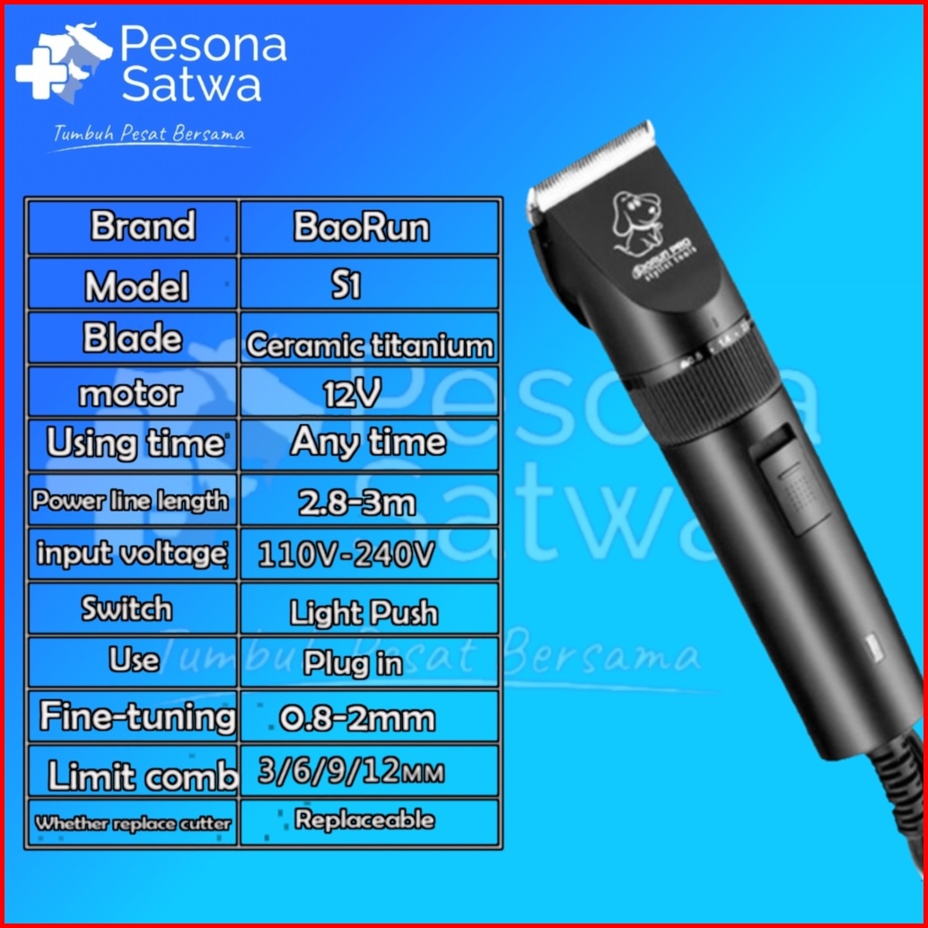 Baorun S1 Original Alat Cukur Elektrik Bulu Hewan -kucing Kambing Domba Anjing Dll-