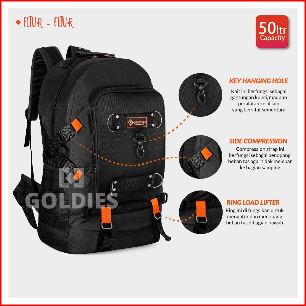 Goldvers Tas Ransel Pria Jumbo Backpack Pakaian Traveling Tas Mudik 50litter Original Import