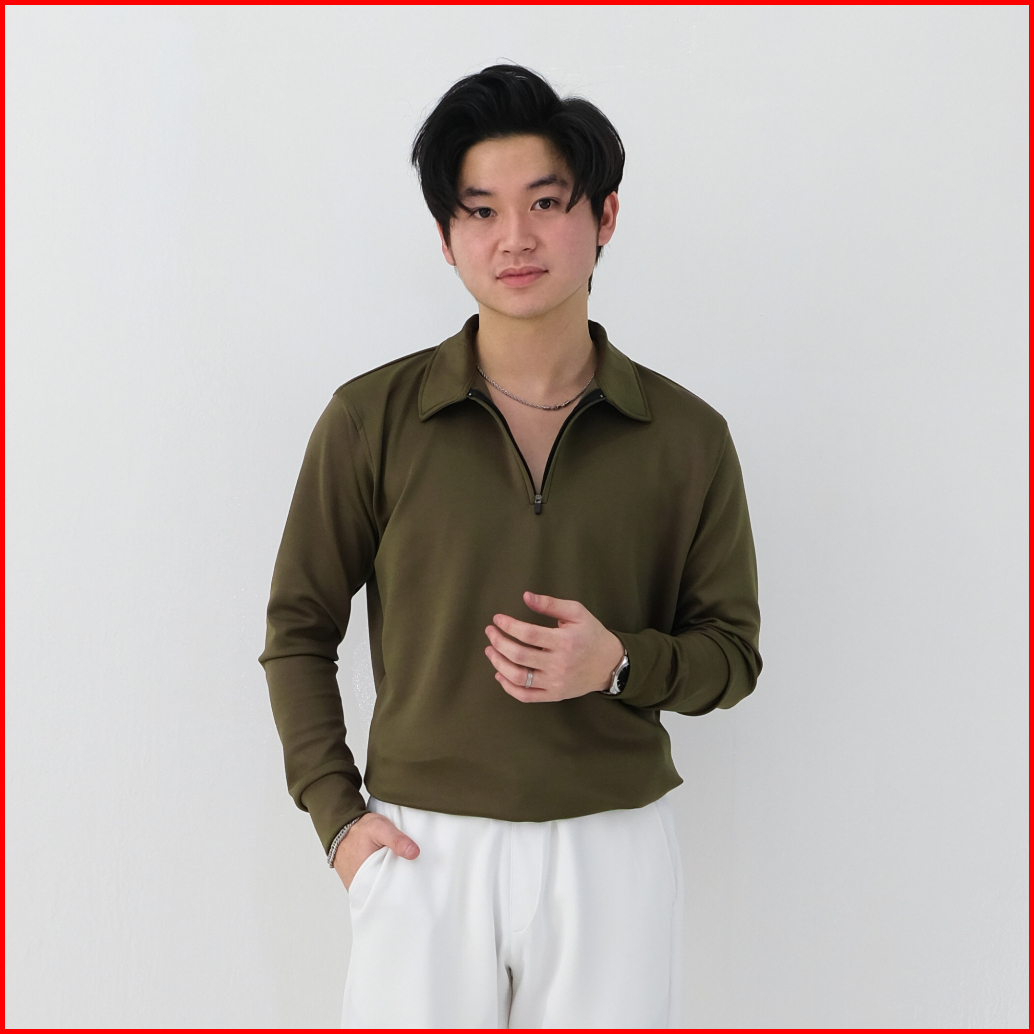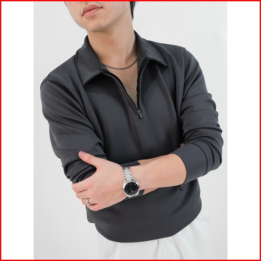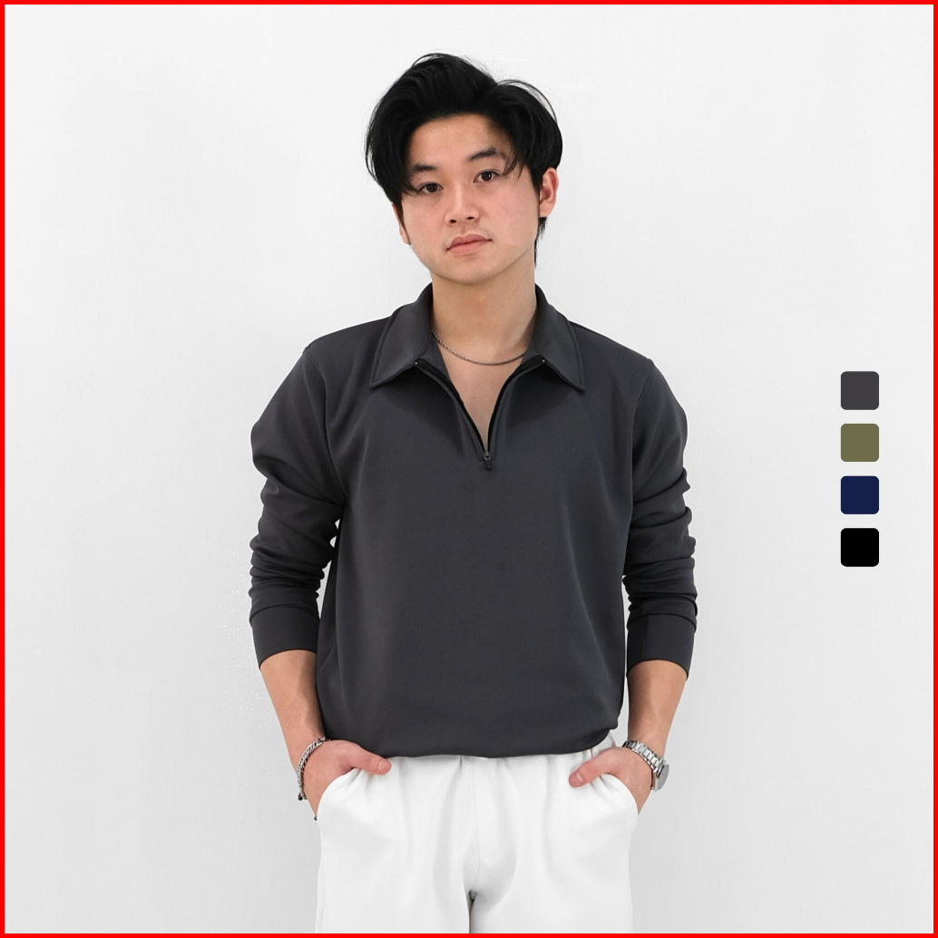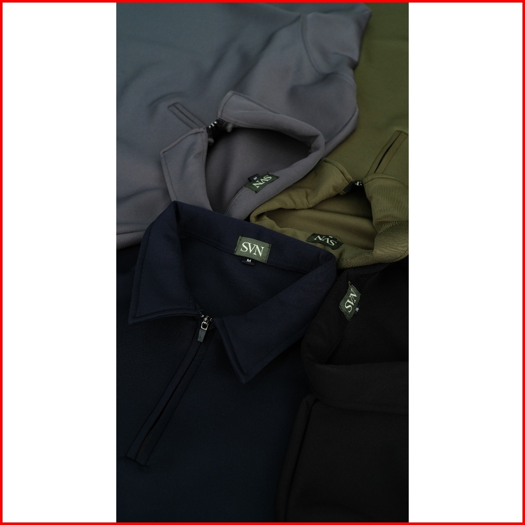 Sanvanina Cuba Upper Zip Long Polo Shirt Polo Zipper Pria Kaos Lengan Panjang Pria Polo Modern Fit Pc-07
