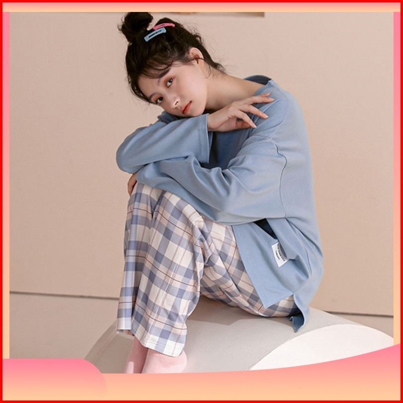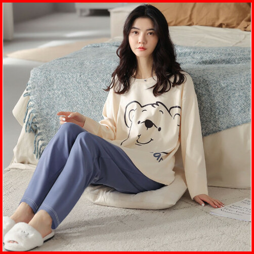 Baju Tidur Setelan Piyama Wanita Set Lengan Panjang Baju Tidur Wanita Celana Panjang Setelan Baju Tidur Wanita