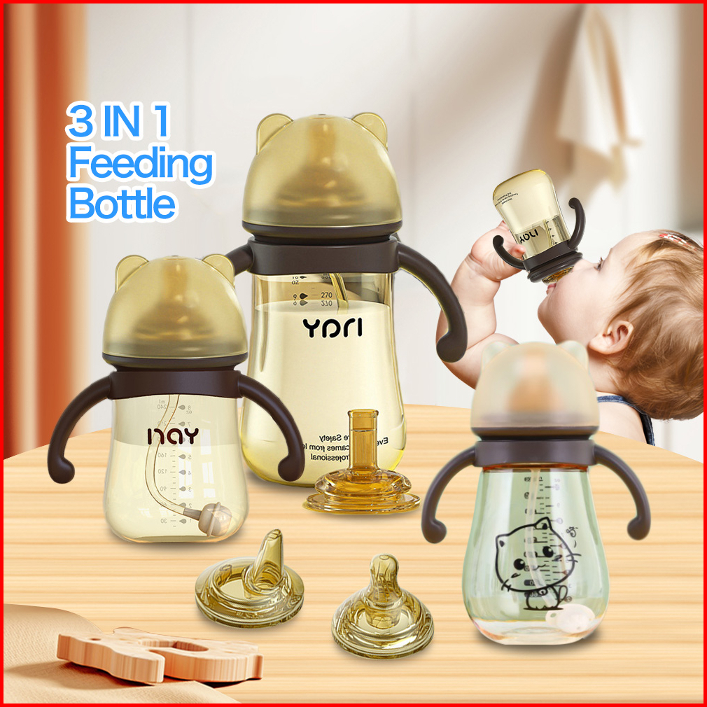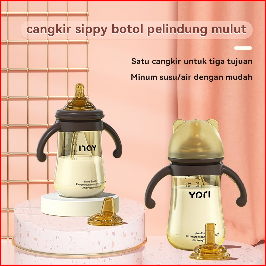 Okeyi 3in1 Botol Susu Bayi Sedotan Botol Minum Anak Anti Tumpah Sippy Training Cup Bayi