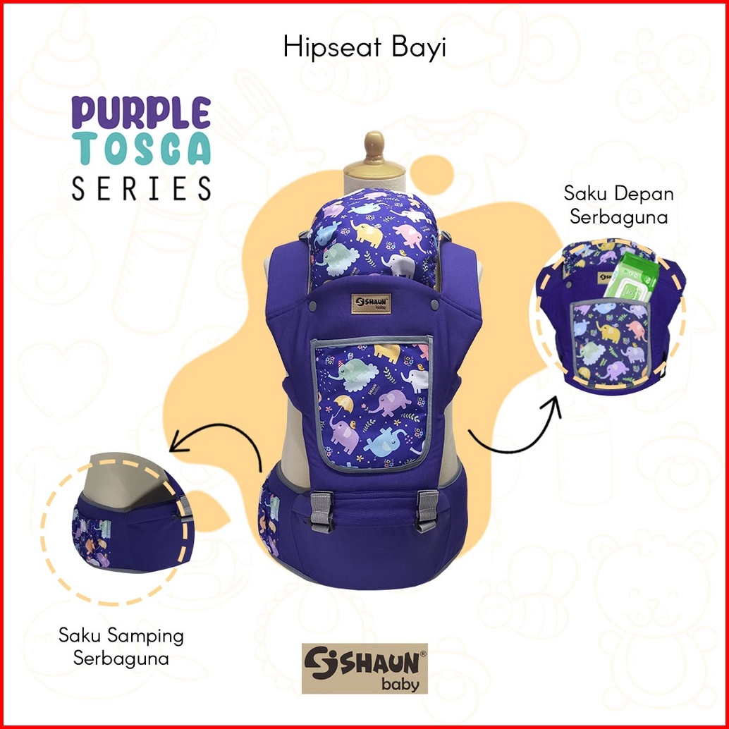 Hipseat Gendongan Depan Duduk Penutup Kepala Dan Saku Depan Multi Fungsi - Shaun Baby