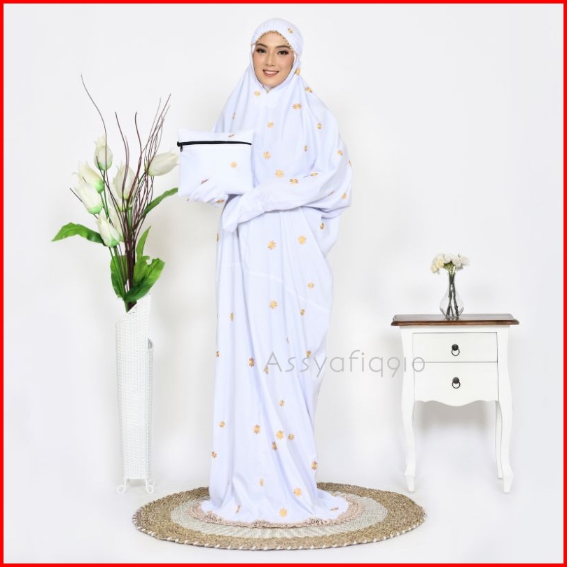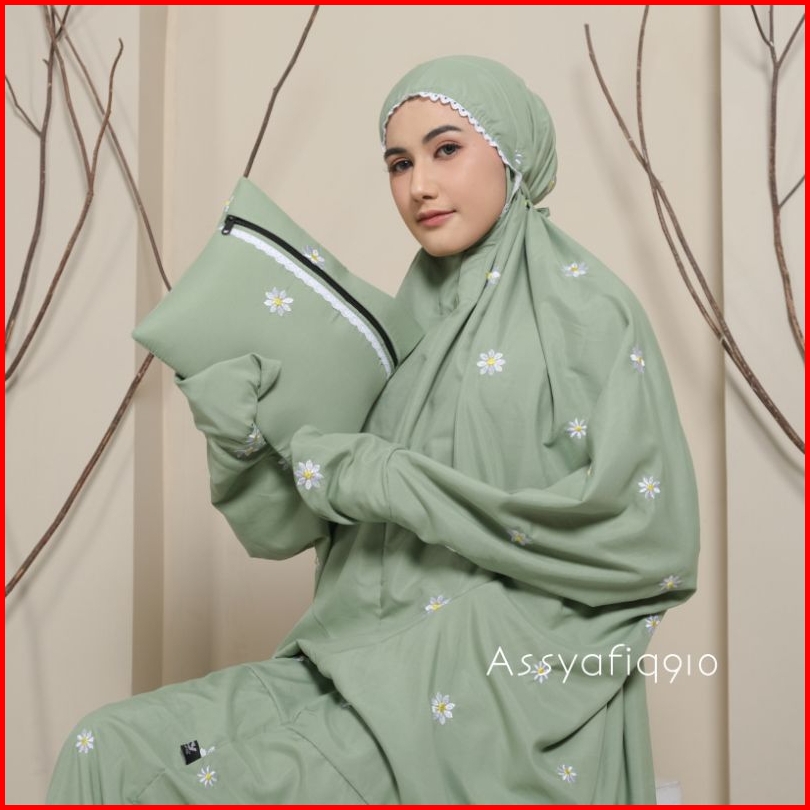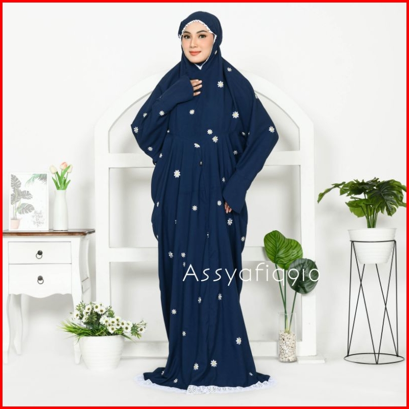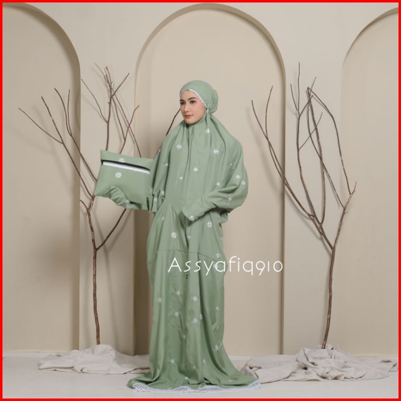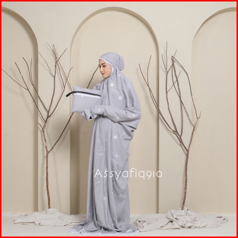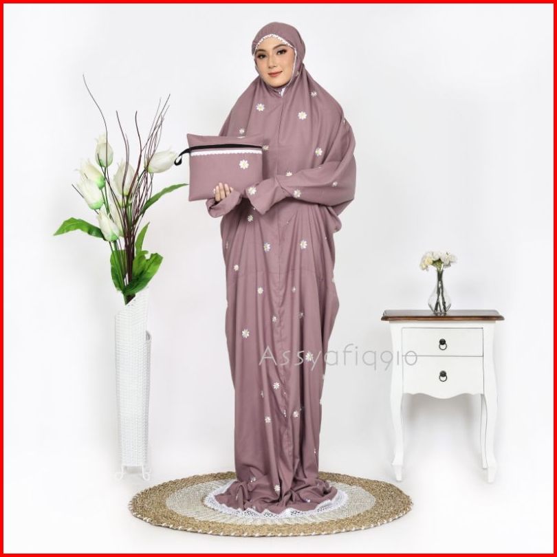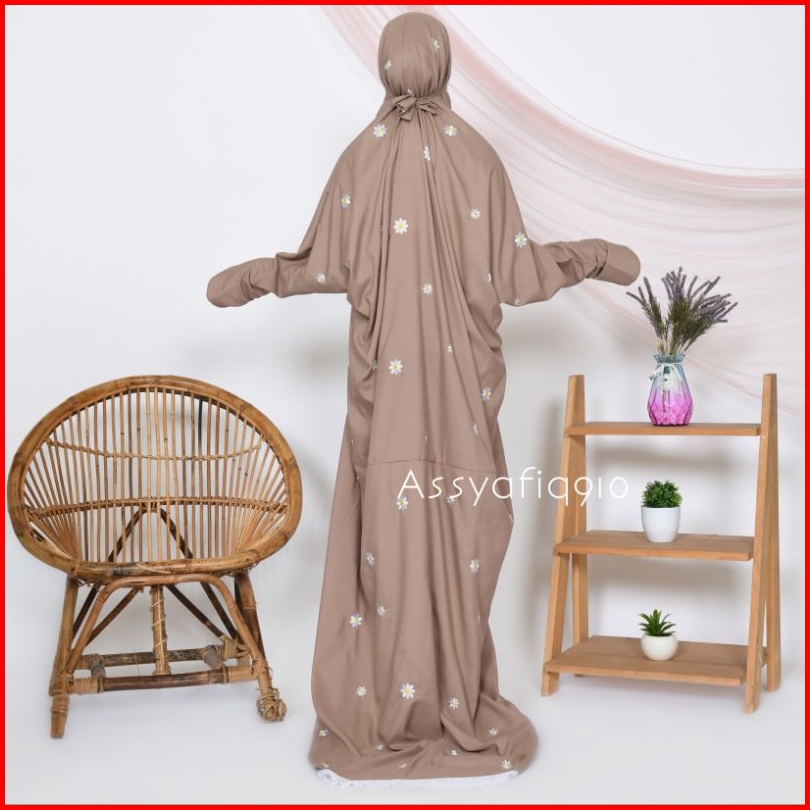 Assyafiq910 - Mukena Terusan Dewasa Inara Bordir Bunga Daisy