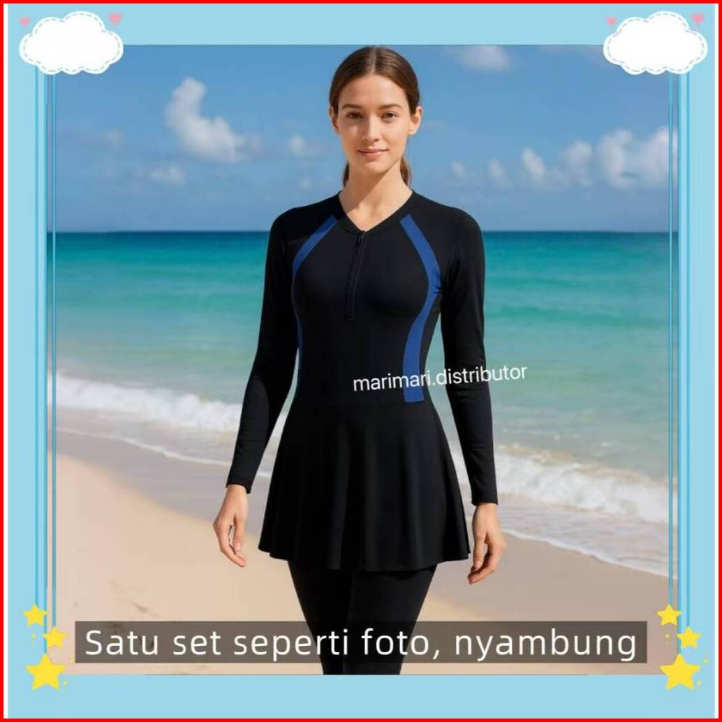 39050 Baju Renang Dewasa Hijab Muslim Lengan Celana Panjang Nyambung Antiuv Muslimah Swimwear