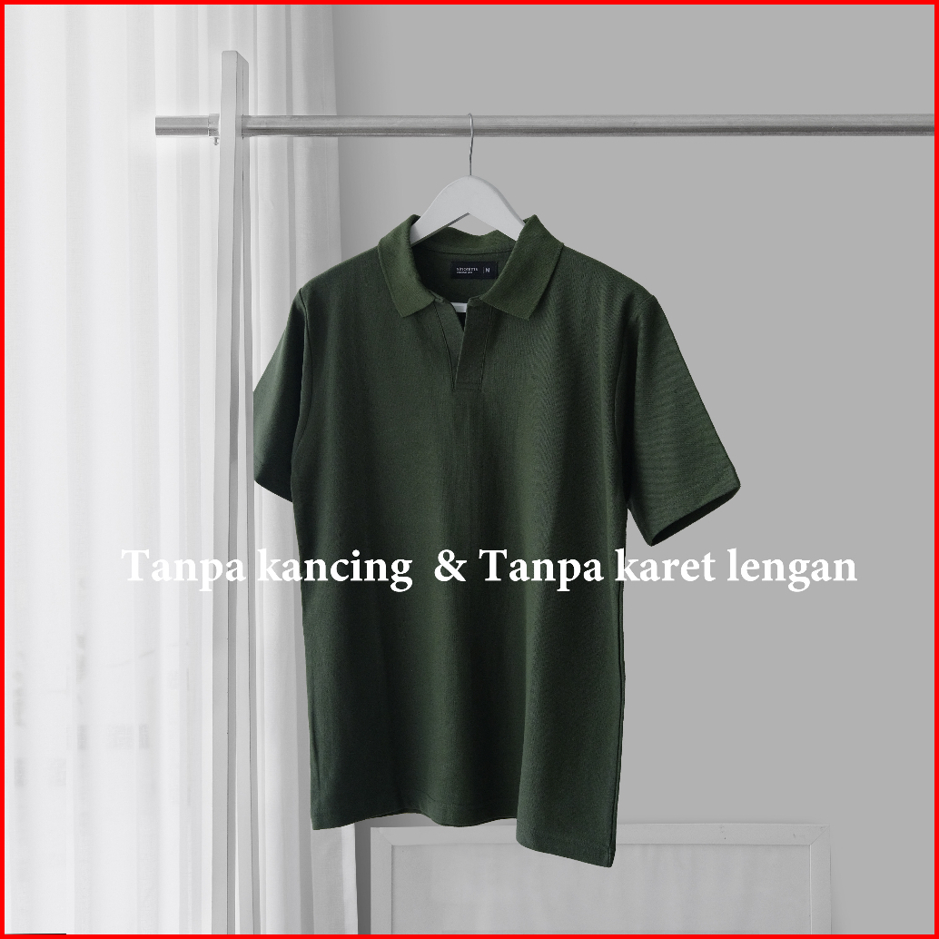 Sinonims Buttonless Polo Shirt Kaos Polo Pria Tanpa Kancing Army Green