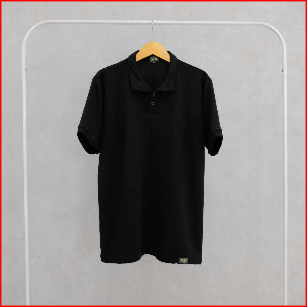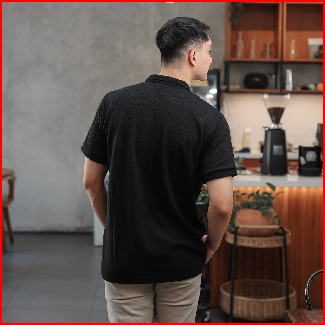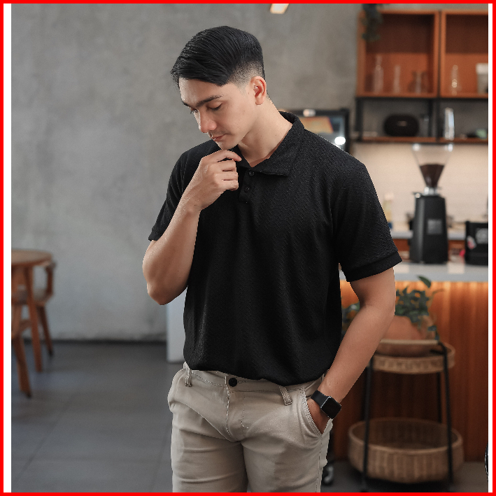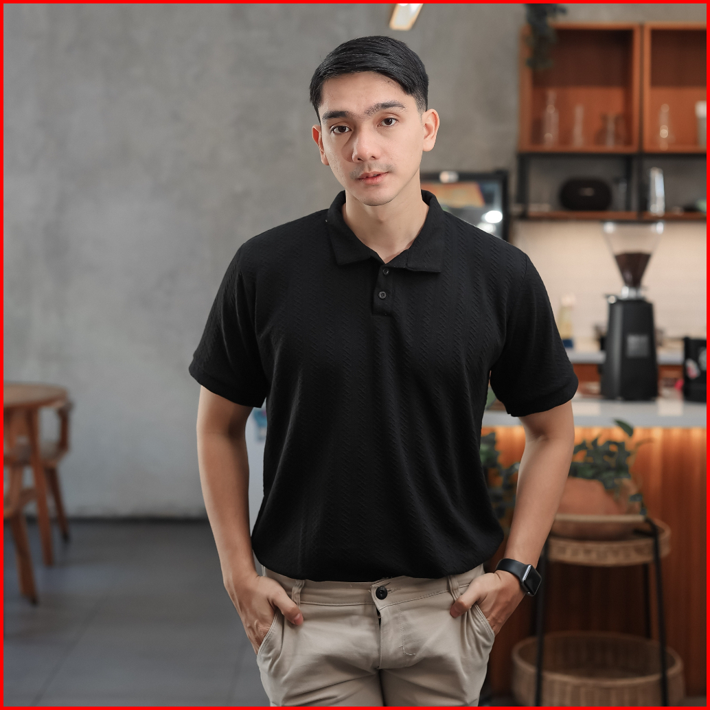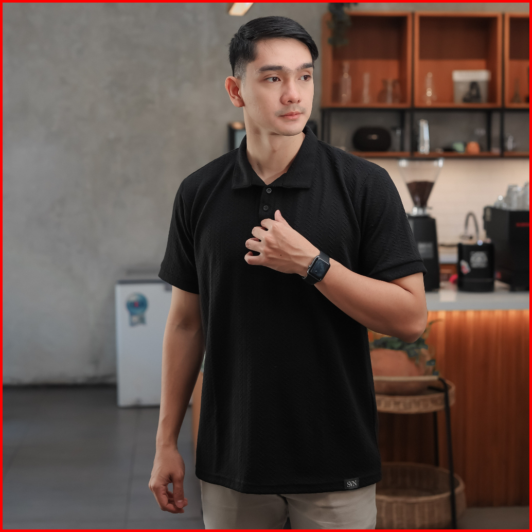 Sanvanina Polo Shirt Pria Knit Kaos Polo Shirt Kaos Pria Berkerah Poloshirt Korea Chulo Black Pc-02a