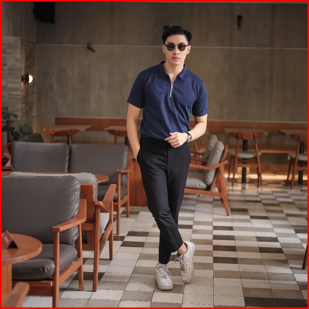 Credo Kaos Polo Shirt Pria Kerah Knit Zipper Premium Navy