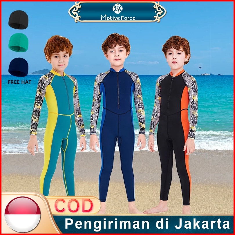 Motive Force Pakaian Renang Anak Laki-laki Lengan Panjang Pelindung Sinar Matahari One-piece Quick Drying Baju Berenang