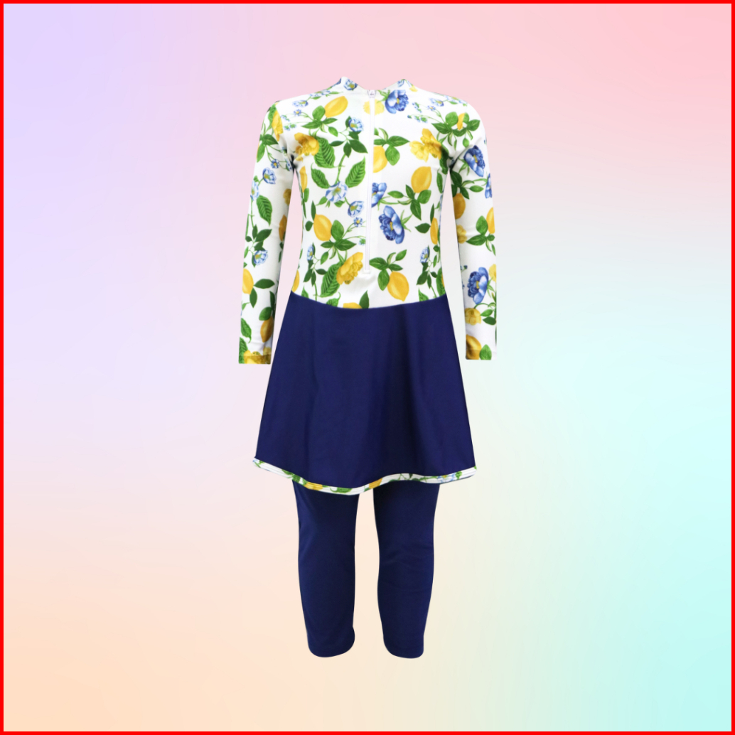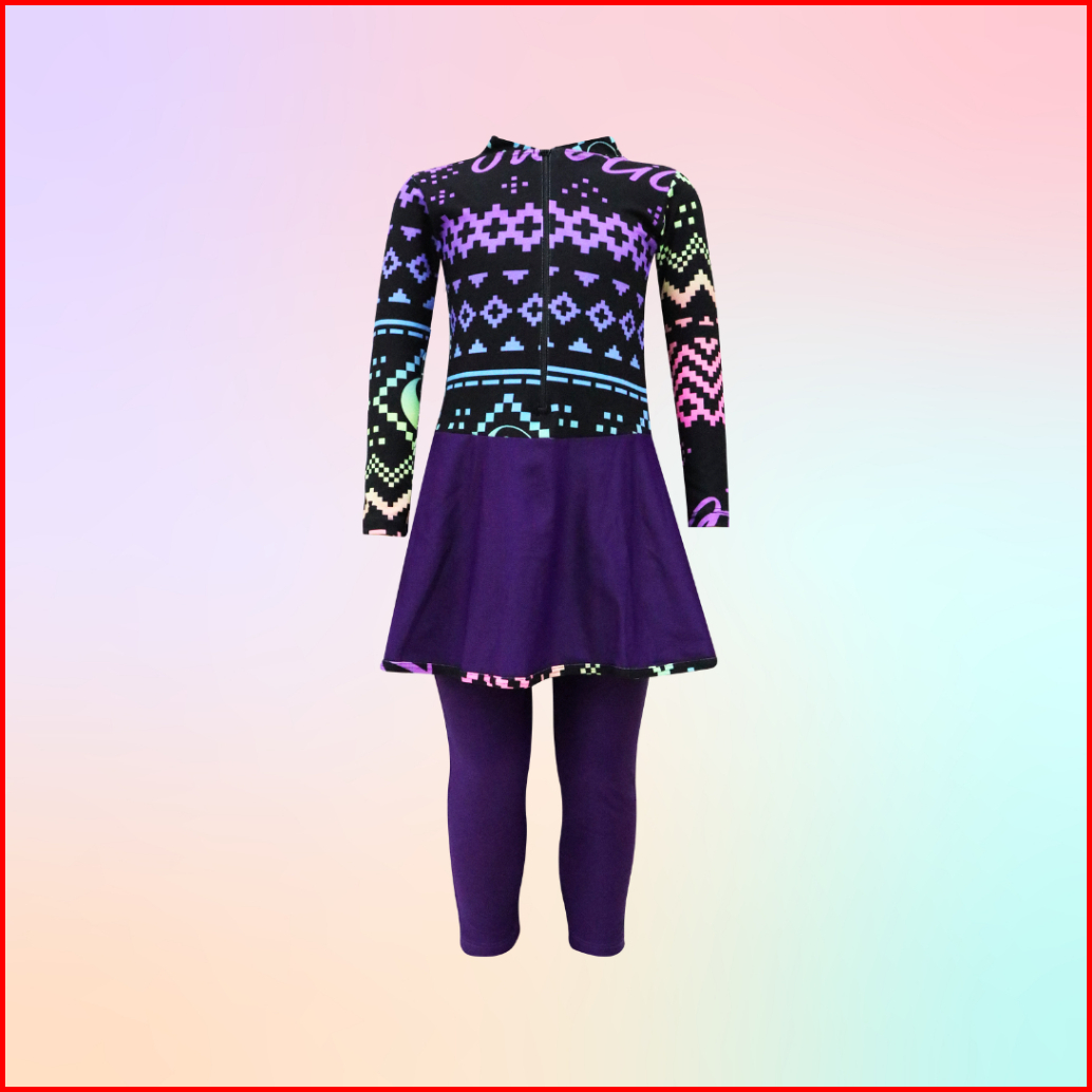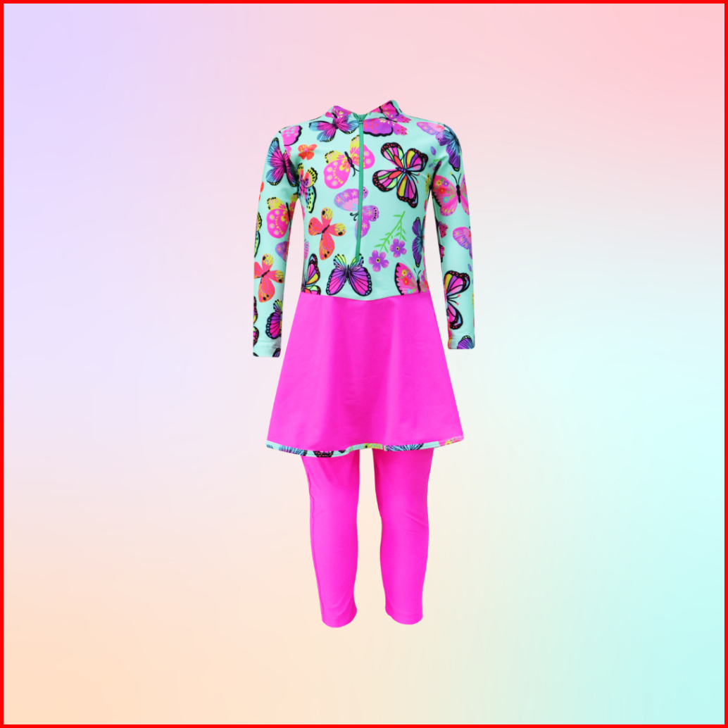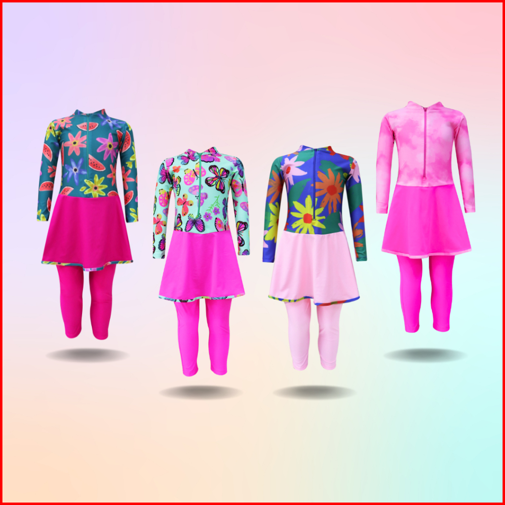 Baju Renang Panjang Anak Perempuan Motif Satu Set Atas Bawah Usia 3-11 Tahun